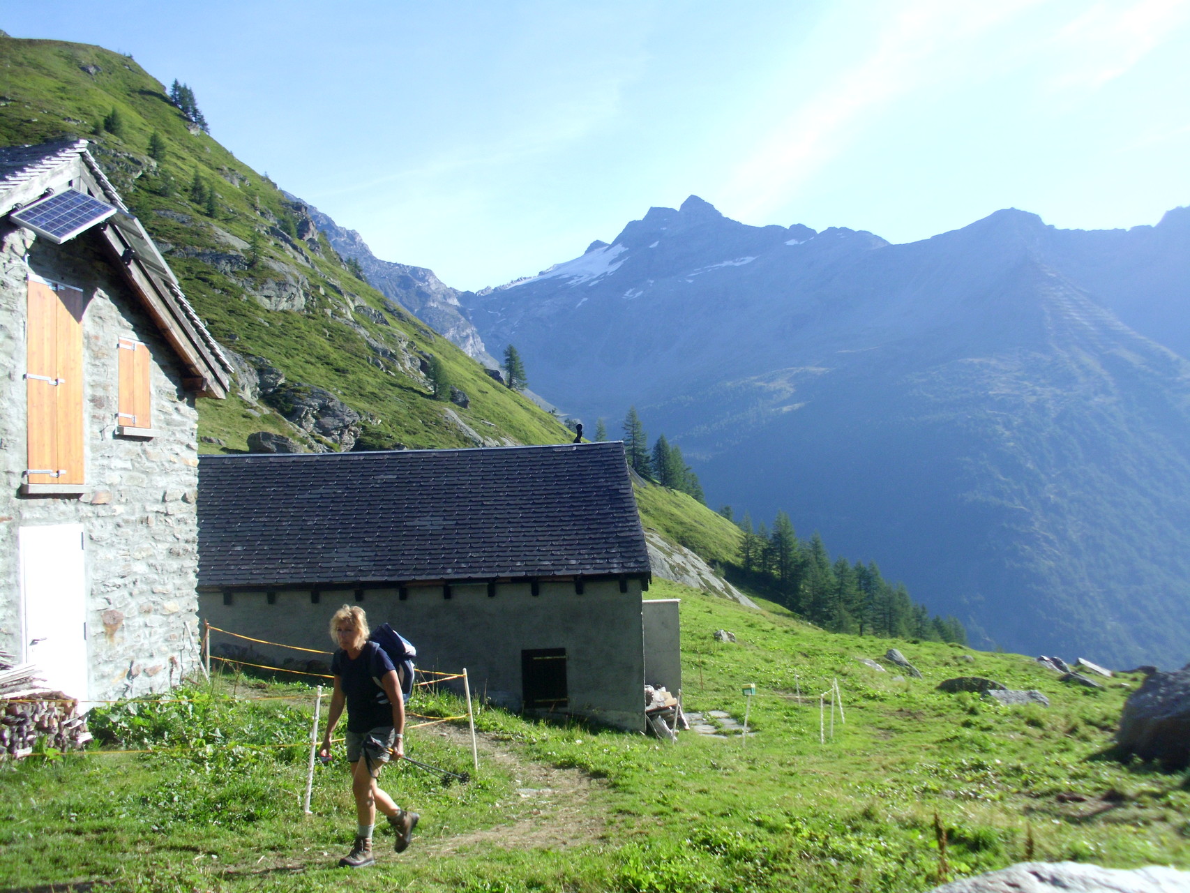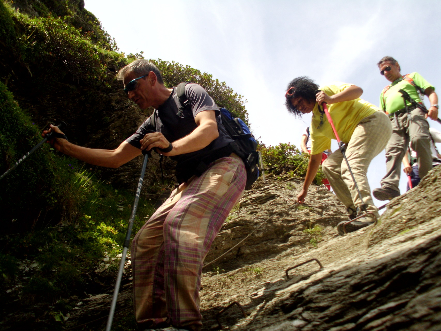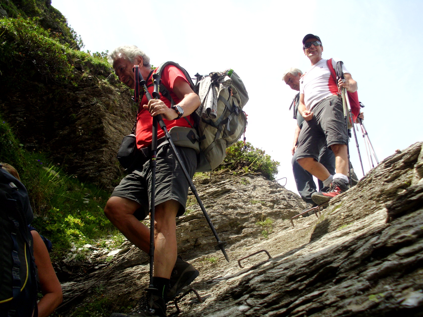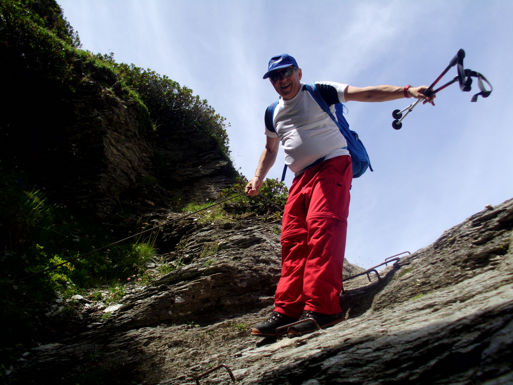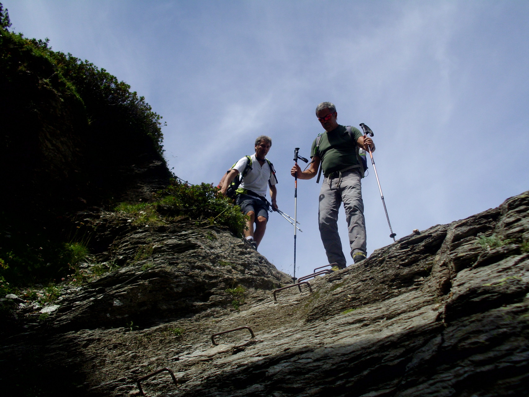 Dopo la lunga sosta per il pranzo ripartiamo alle 13,30. Risaliamo ai cartelli di segnaletica e scendiamo a sinistra, sempre su pietraia verso Engeloch. Superiamo un breve tratto attrezzato con scalini di ferro fissati nella roccia, alle 15,10 raggiungiamo l'altezza della suprestrada e prendiamo il sentiero Stockalper che in piano ci porta alle auto: sono le 16,05.