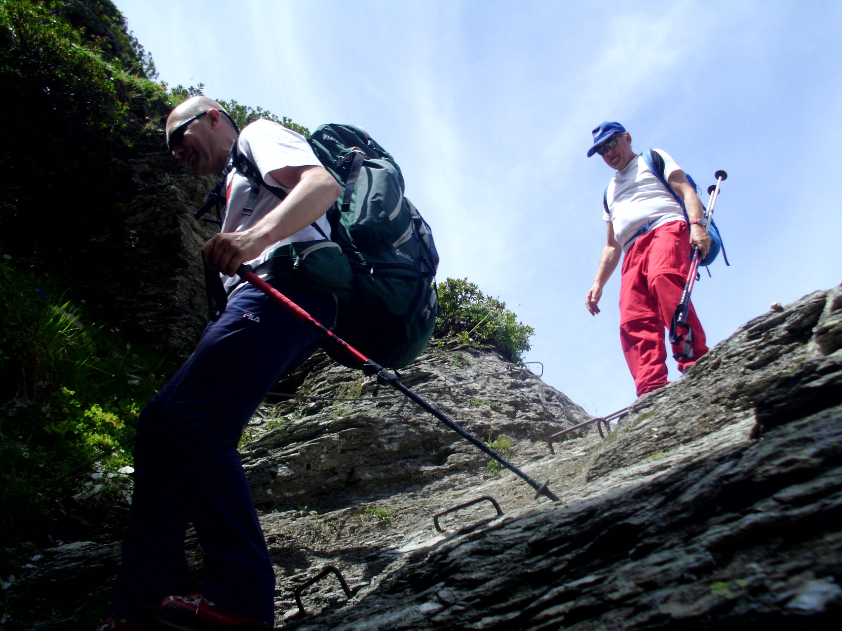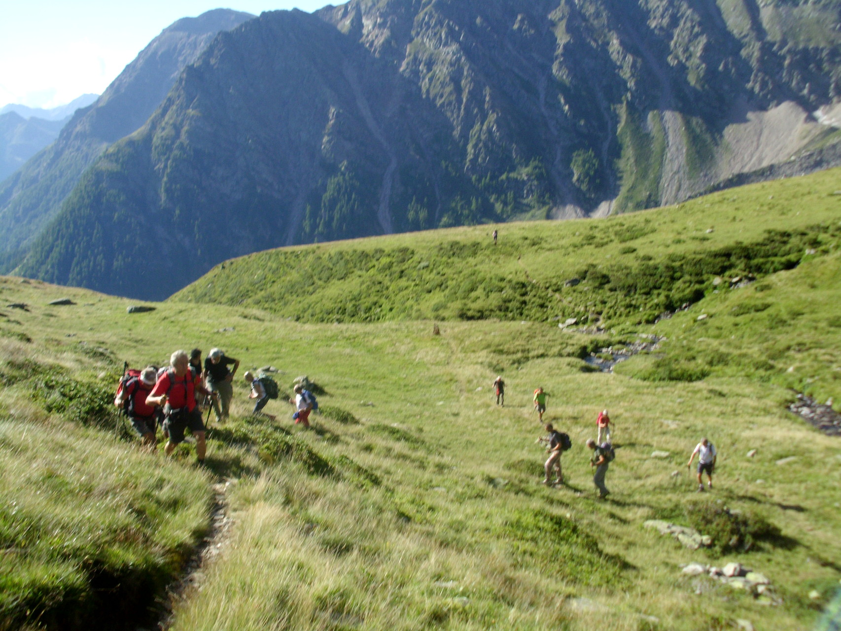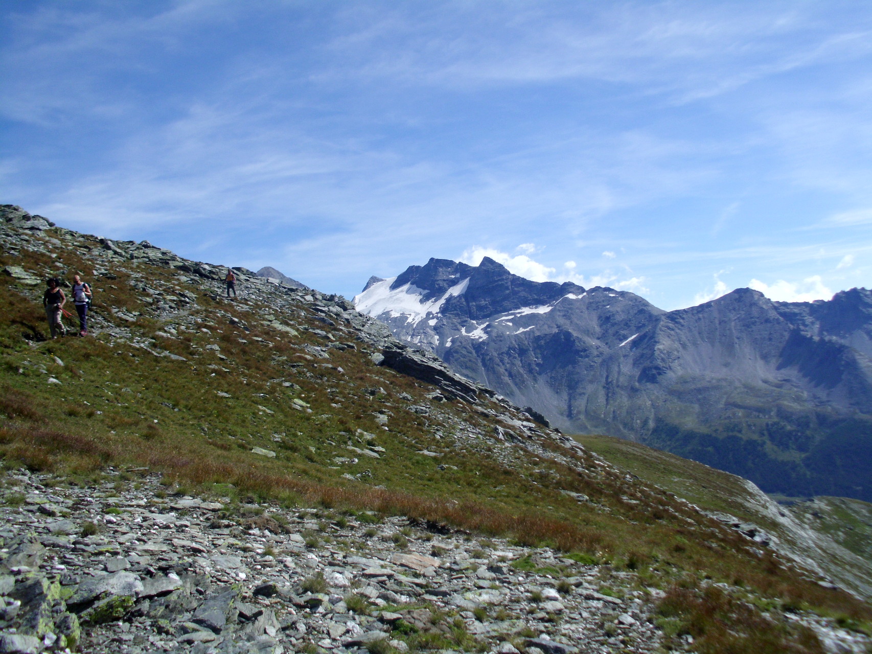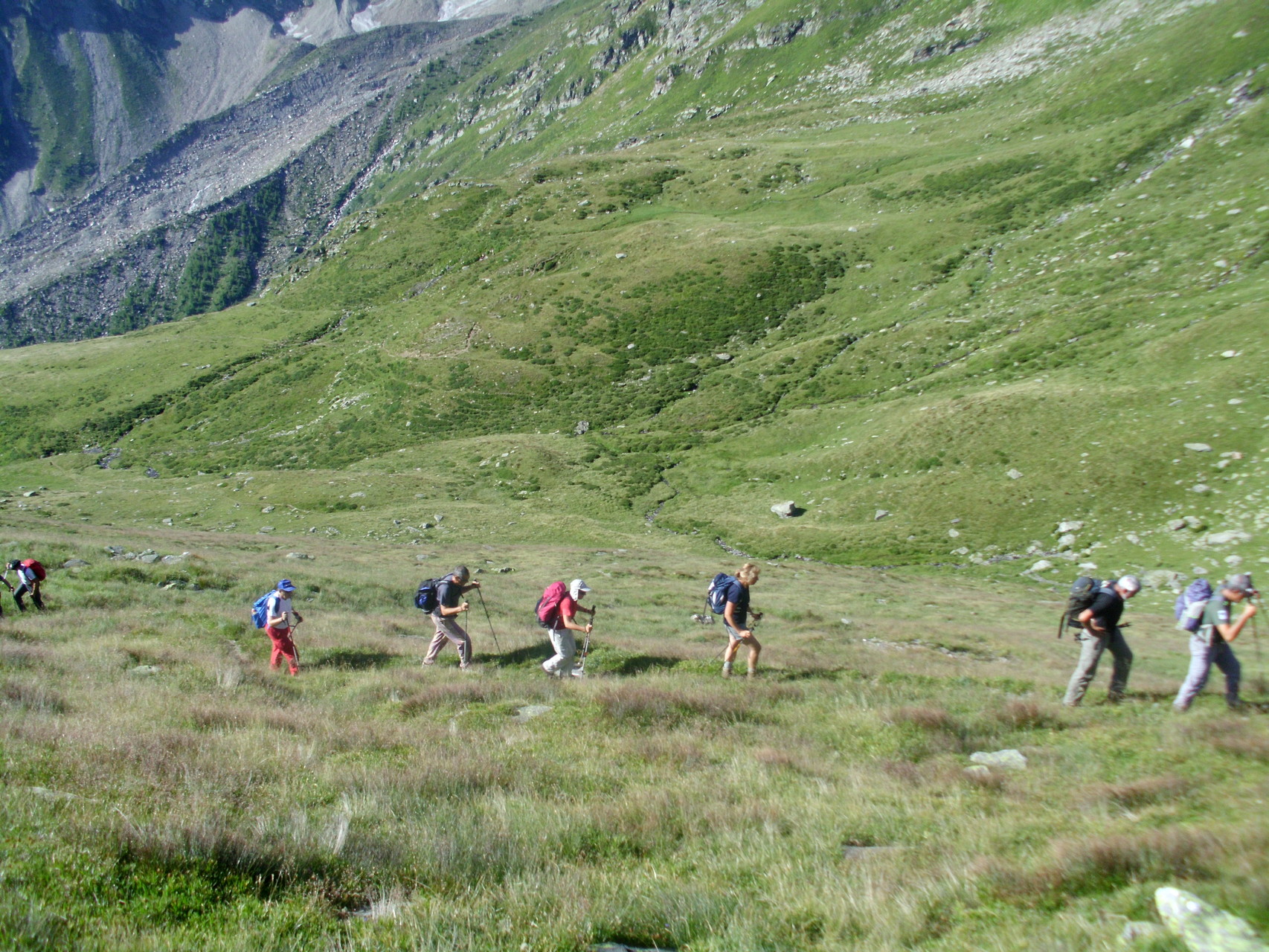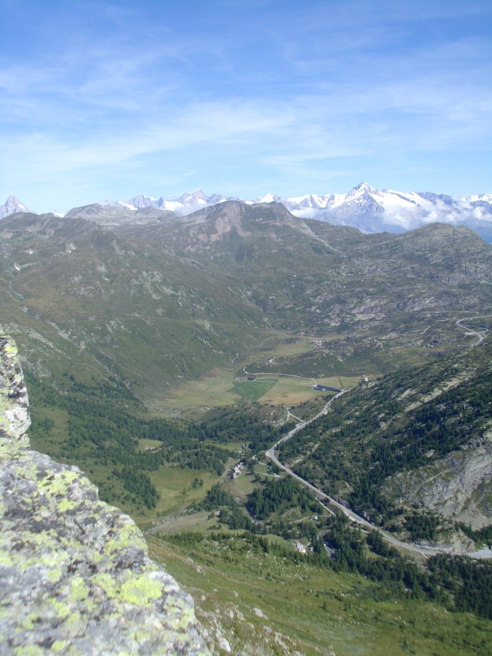 Dopo la lunga sosta per il pranzo ripartiamo alle 13,30. Risaliamo ai cartelli di segnaletica e scendiamo a sinistra, sempre su pietraia verso Engeloch. Superiamo un breve tratto attrezzato con scalini di ferro fissati nella roccia, alle 15,10 raggiungiamo l'altezza della suprestrada e prendiamo il sentiero Stockalper che in piano ci porta alle auto: sono le 16,05.