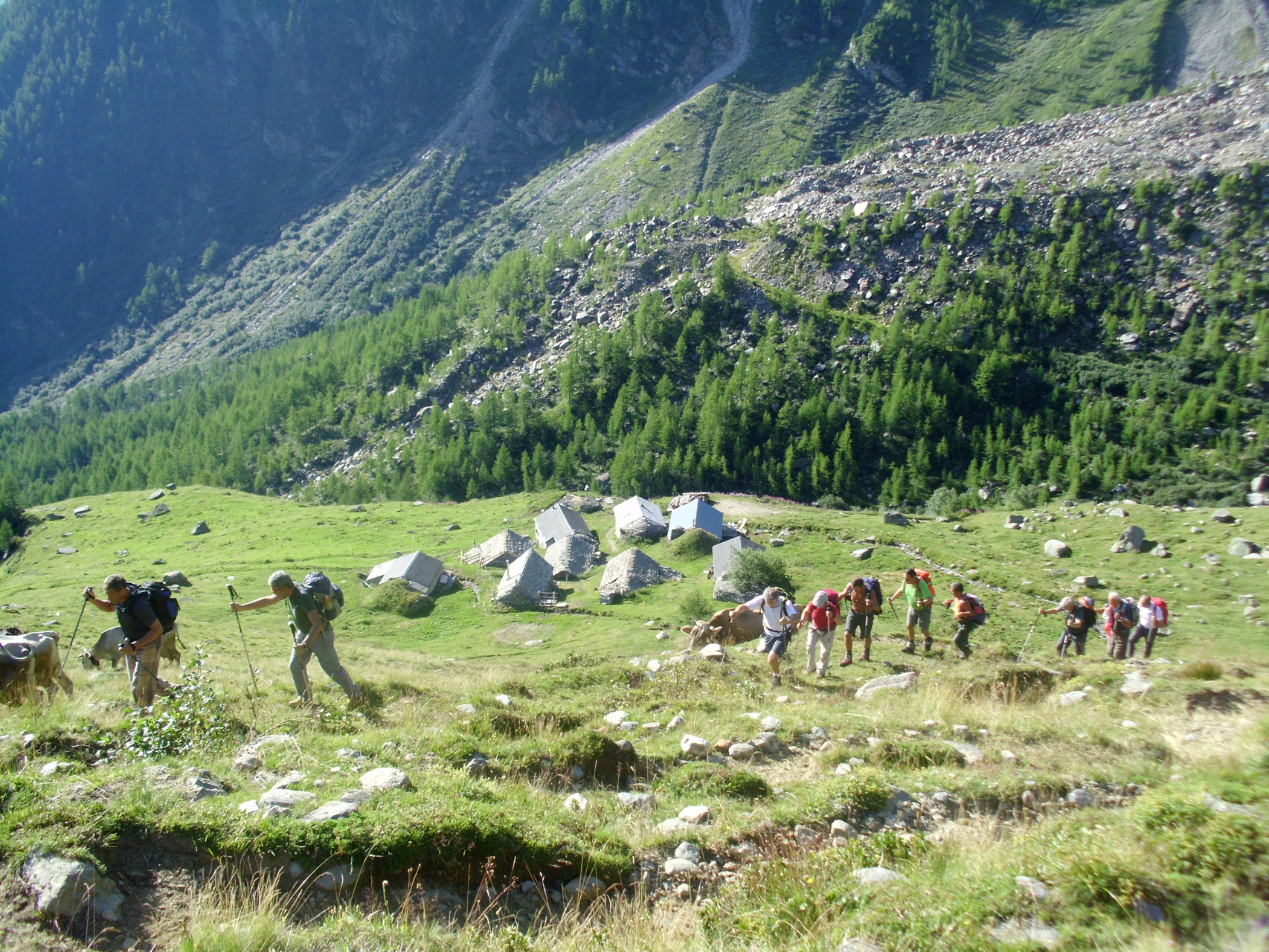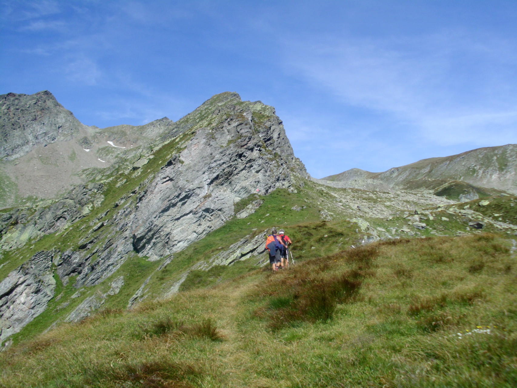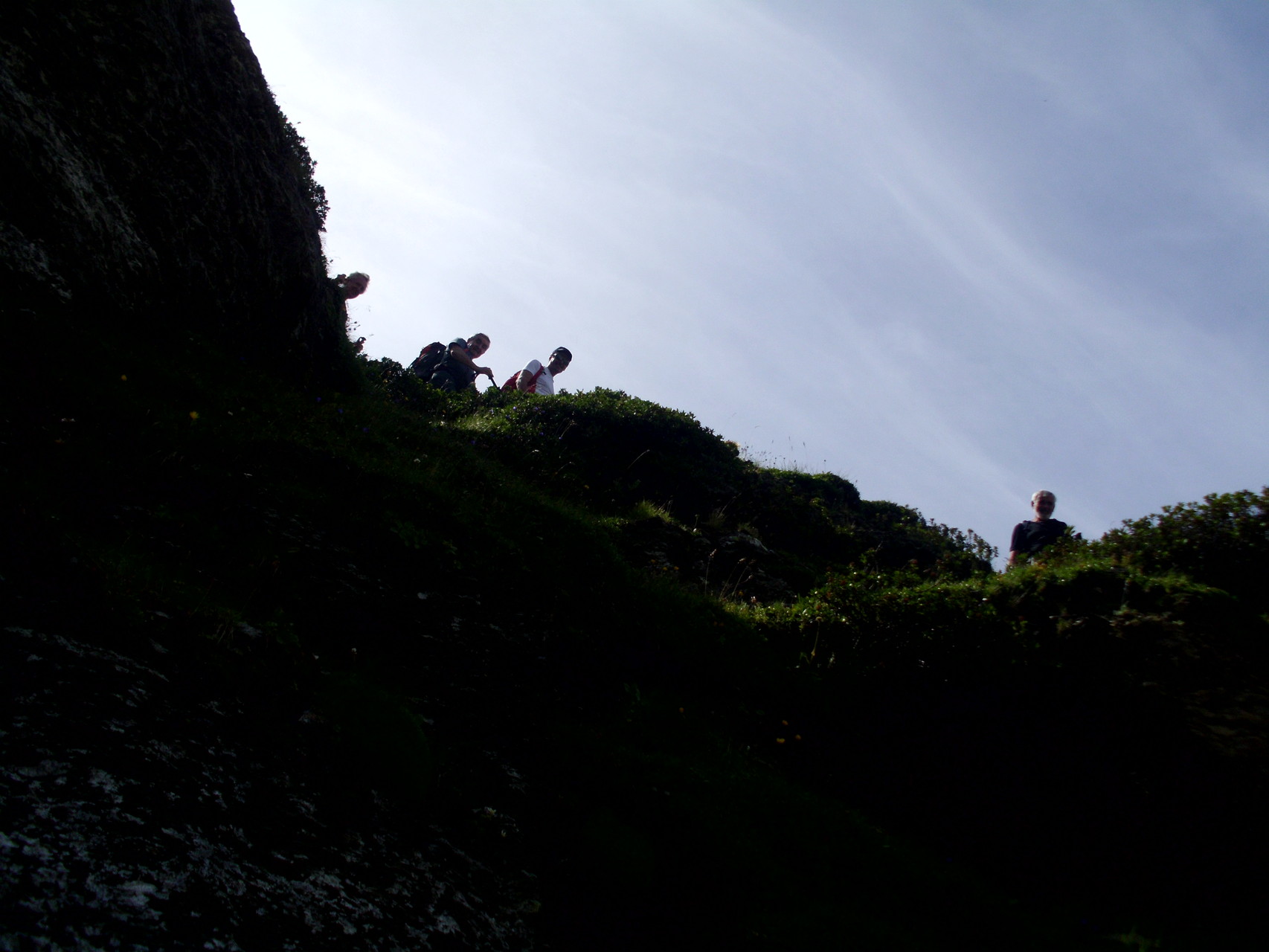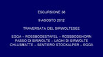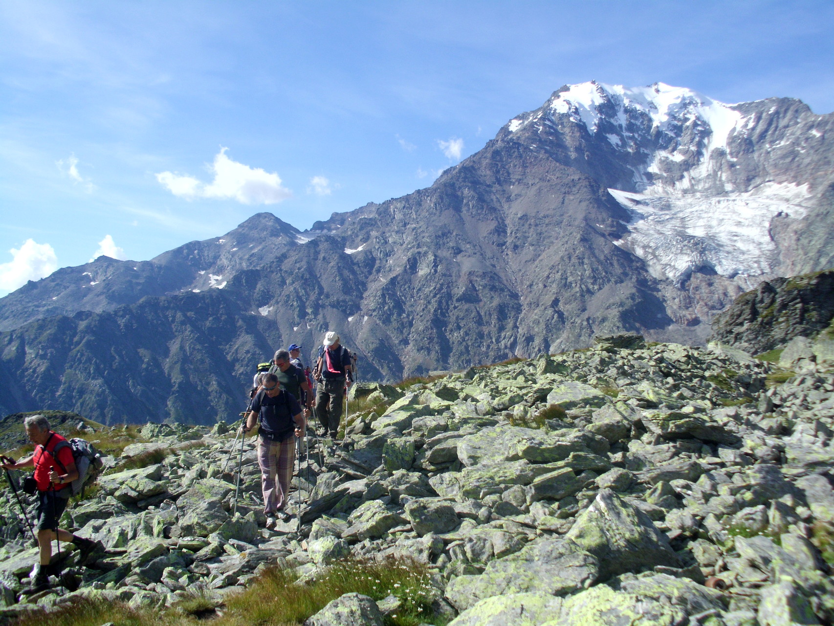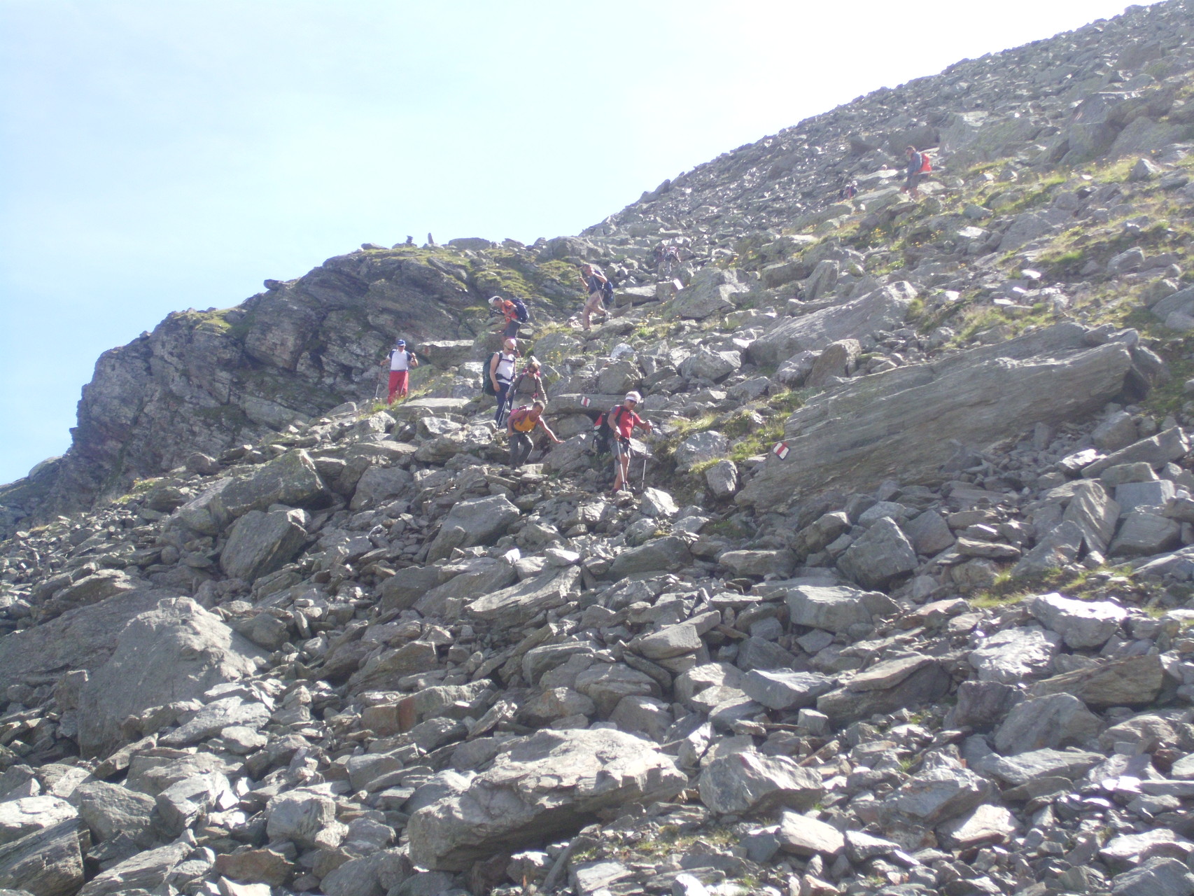 Dopo la lunga sosta per il pranzo ripartiamo alle 13,30. Risaliamo ai cartelli di segnaletica e scendiamo a sinistra, sempre su pietraia verso Engeloch. Superiamo un breve tratto attrezzato con scalini di ferro fissati nella roccia, alle 15,10 raggiungiamo l'altezza della suprestrada e prendiamo il sentiero Stockalper che in piano ci porta alle auto: sono le 16,05.