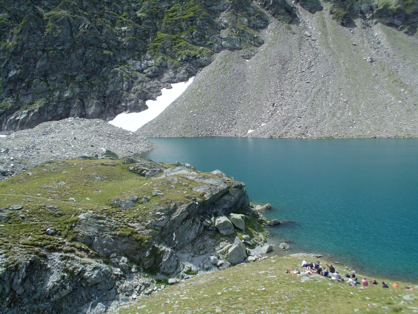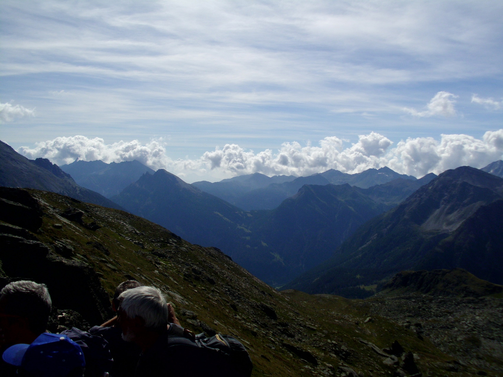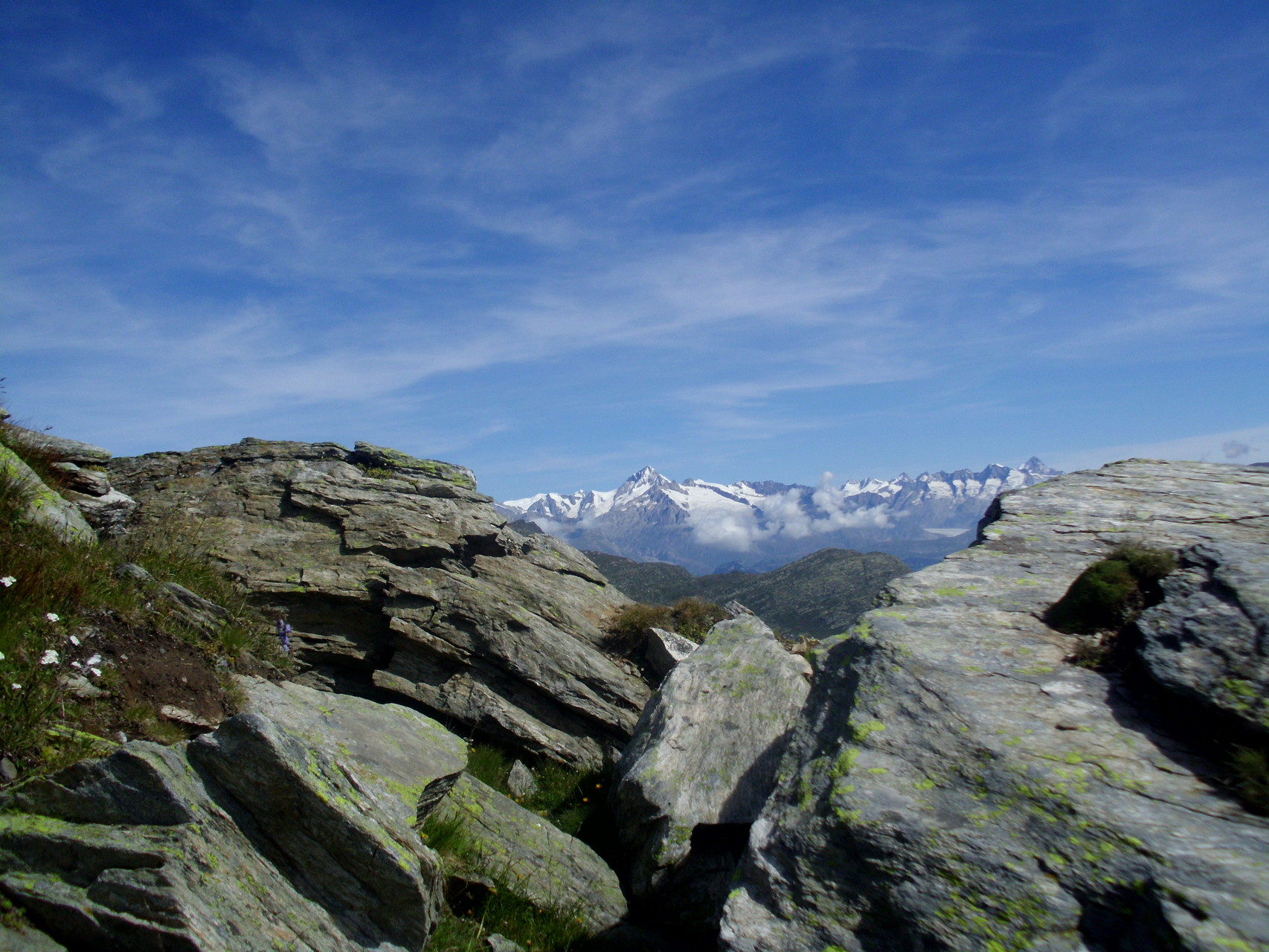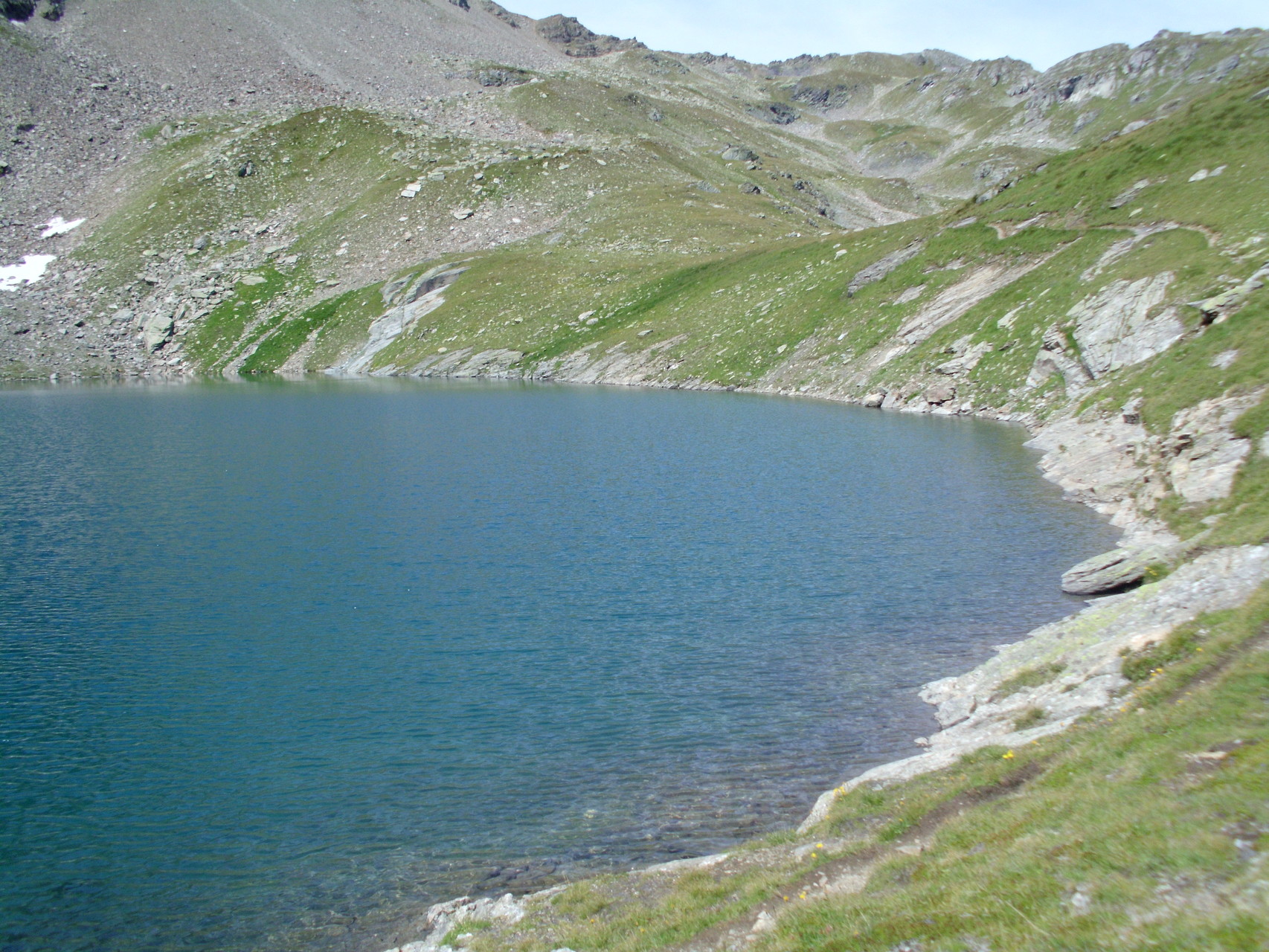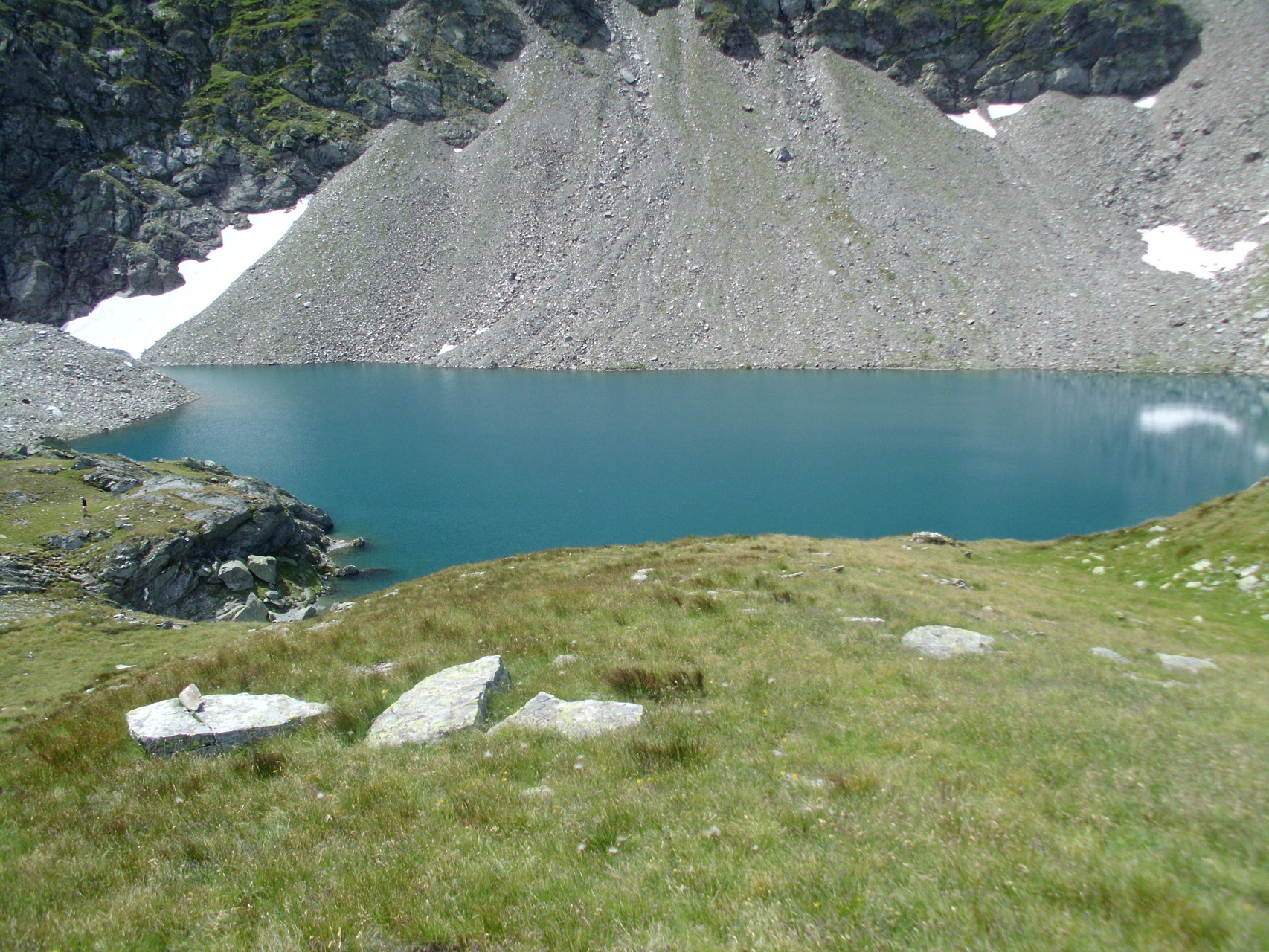 Saliamo su bel sentiero e alle 8,40 arriviamo al bel alpeggio di Rossboden m.1922, breve sosta quindi ripartiamo, la vegetazione finisce ma il percorso è sempre bello e panoramico. Raggiungiamo la cresta dove godiamo della magnifica vista sul Passo del Sempione. Proseguiamo in cresta fino al monte Rossboden m.2550, quindi scendiamo su ripida pietraia fino al lago Sirwoltesee m.2400 circa, sono le 11,50. Carlo decide di fare un tuffo nel lago (vedi fotogallery), l'acqua è gelida ed esce quasi subito.