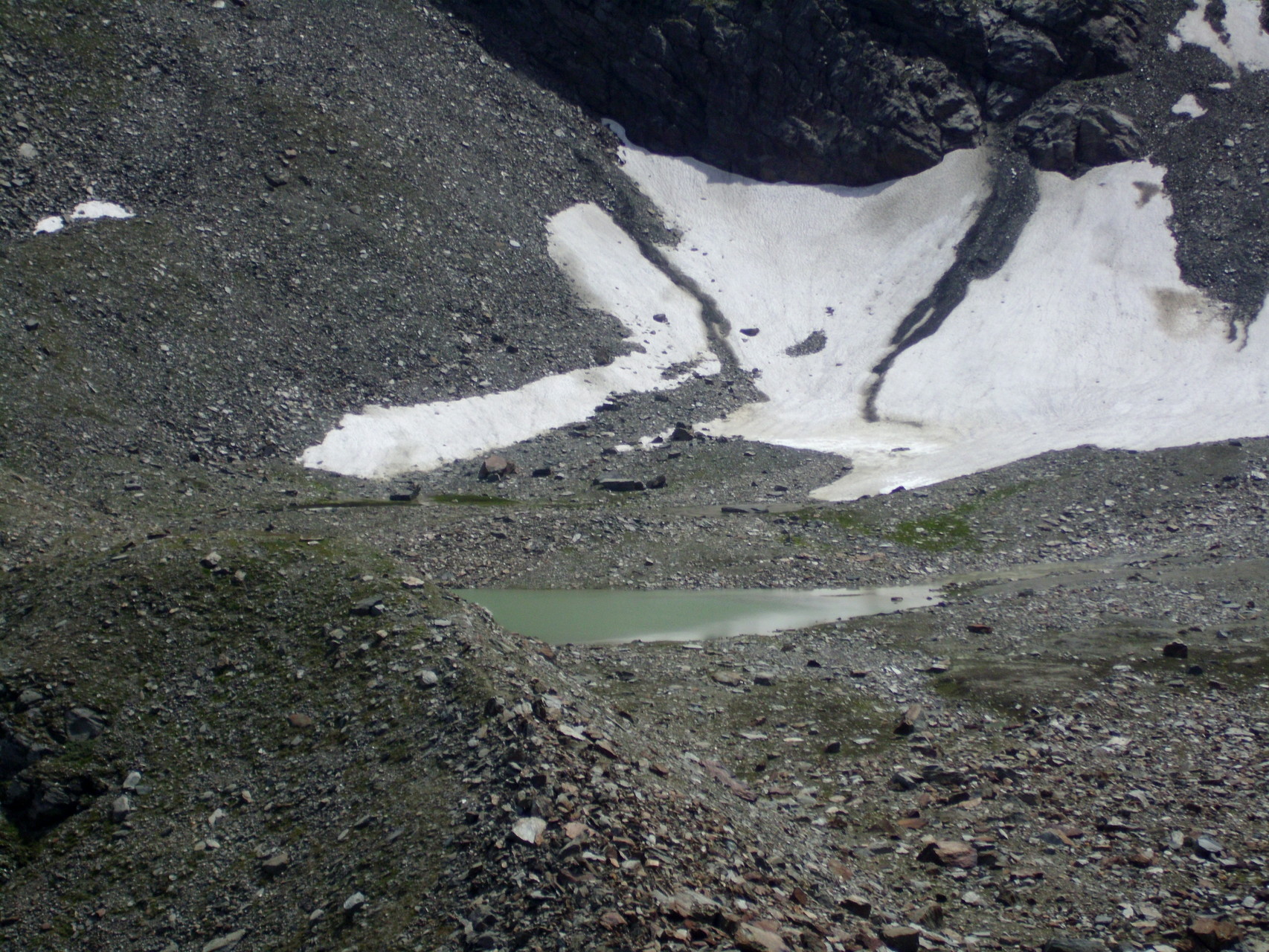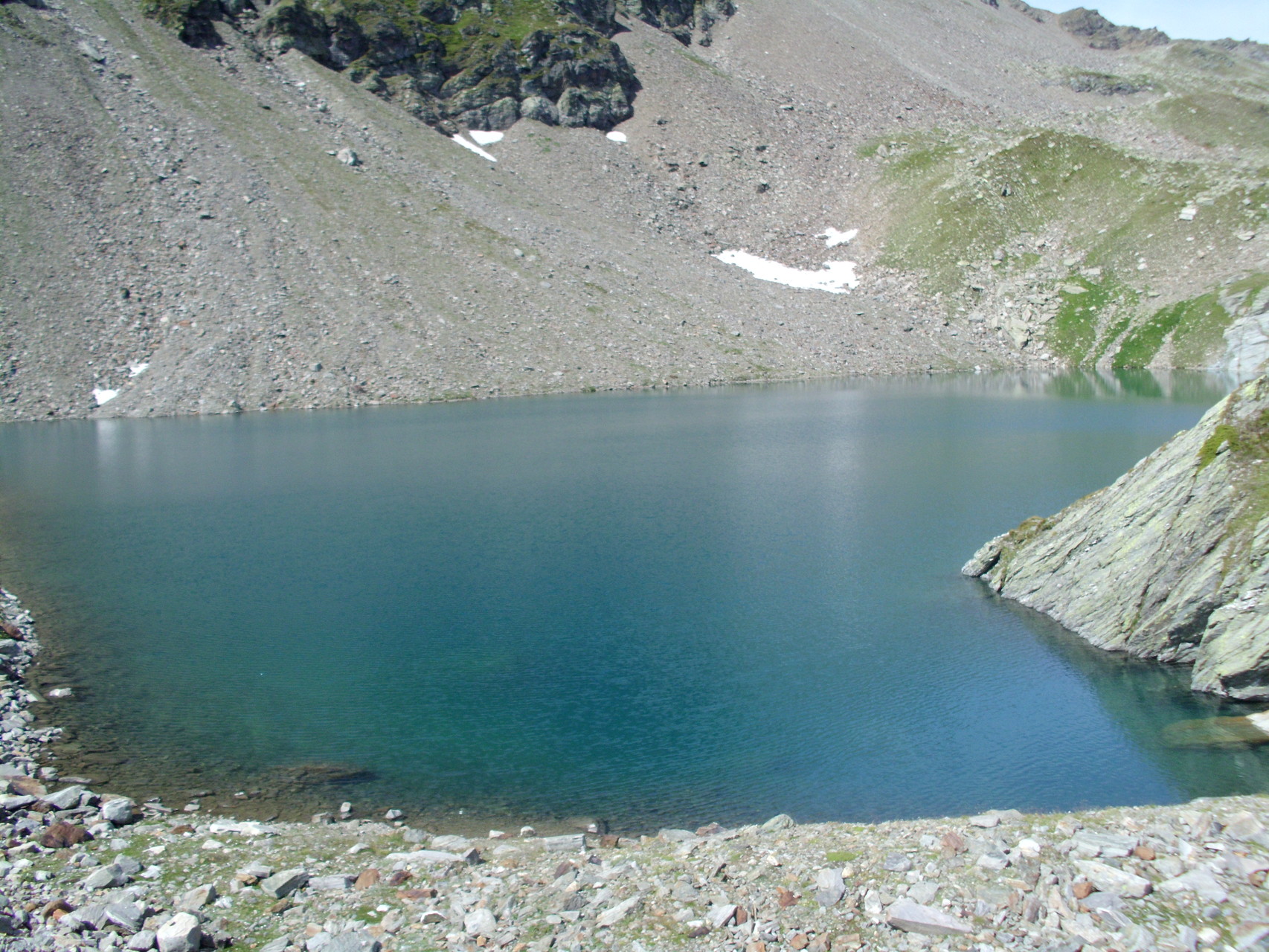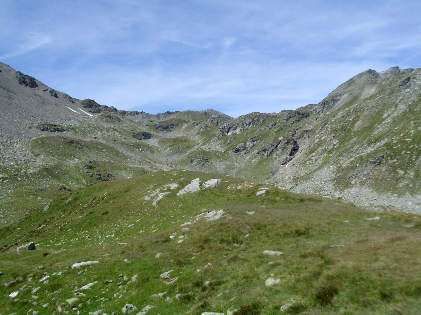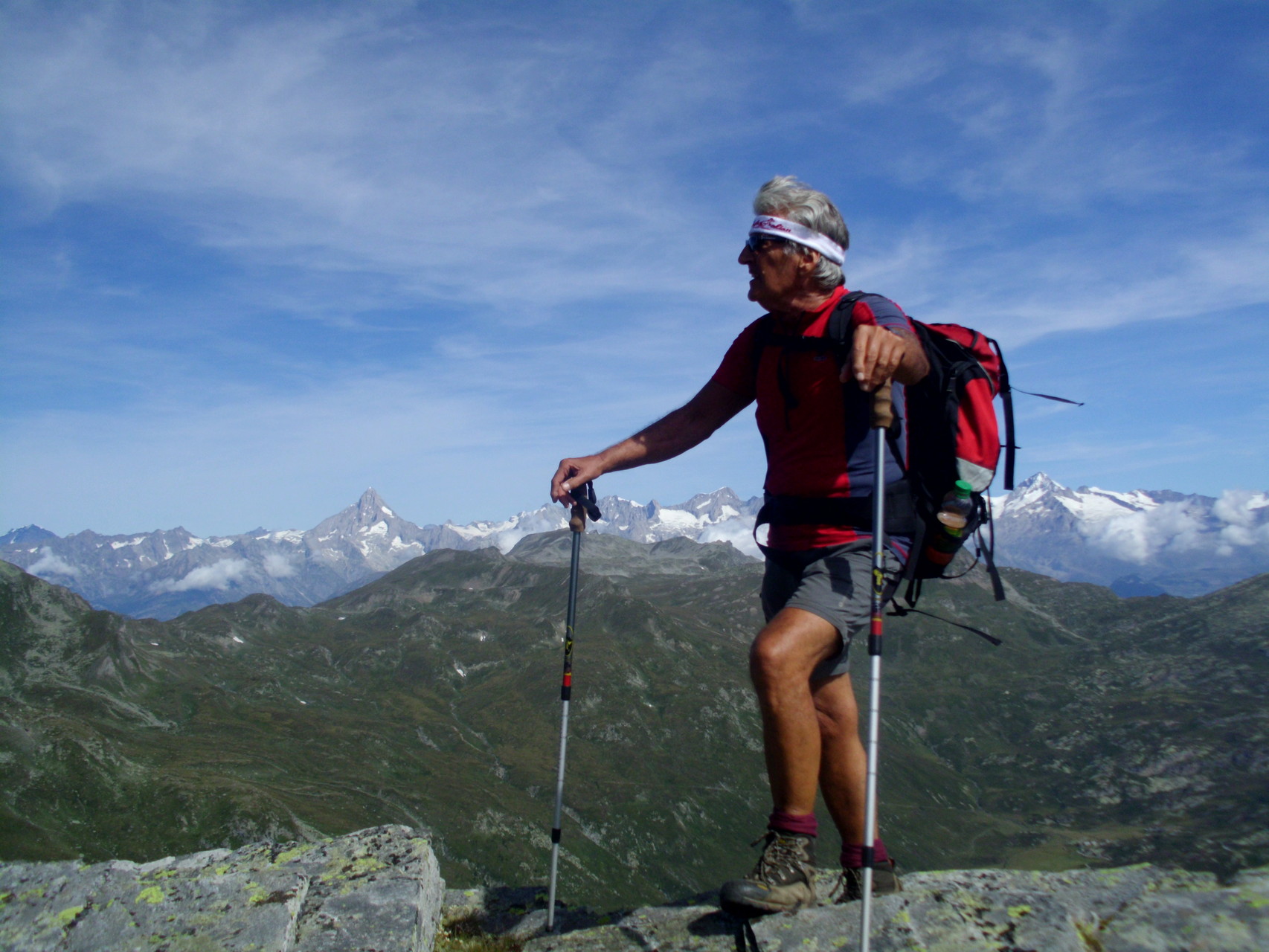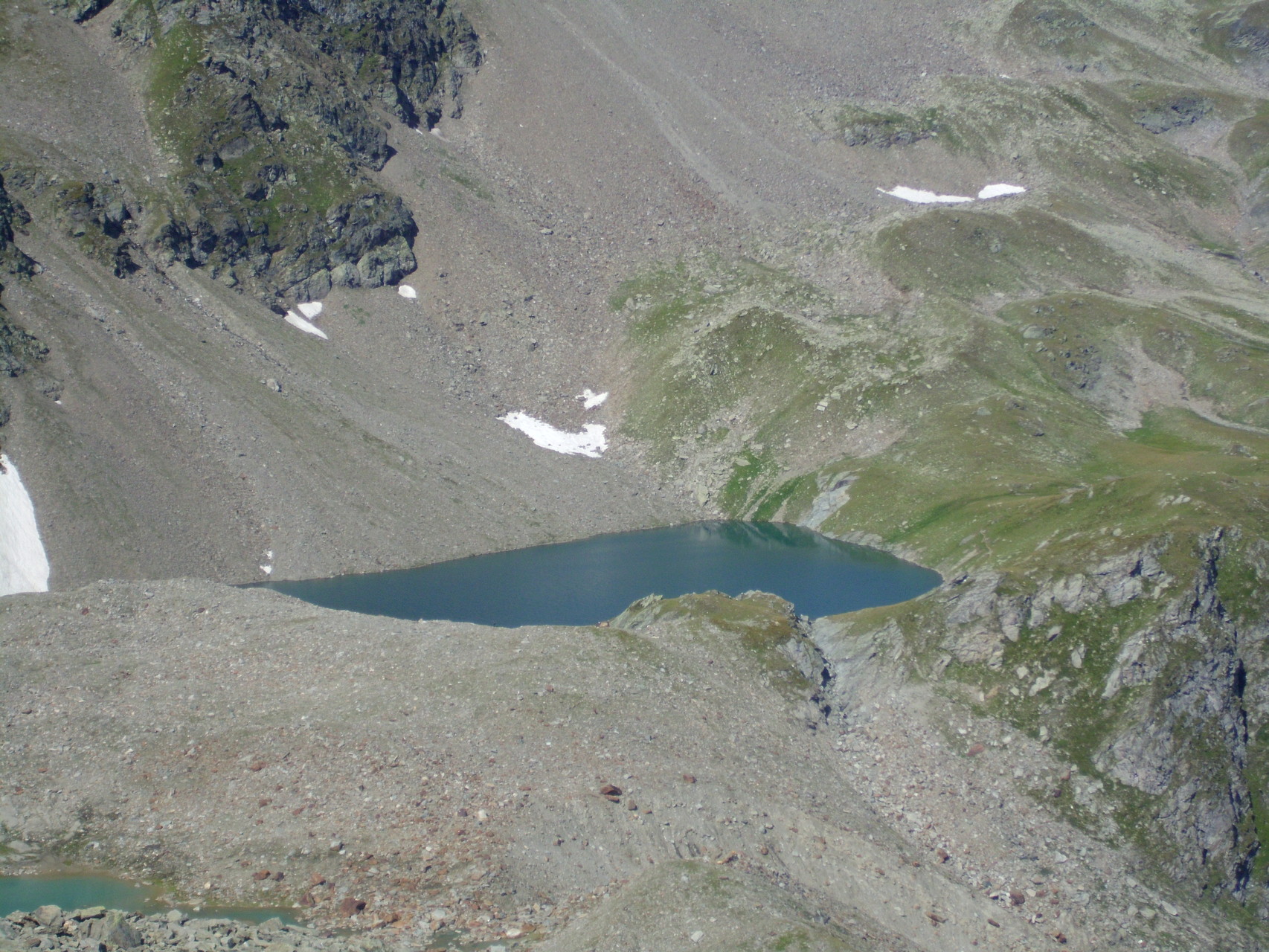 Saliamo su bel sentiero e alle 8,40 arriviamo al bel alpeggio di Rossboden m.1922, breve sosta quindi ripartiamo, la vegetazione finisce ma il percorso è sempre bello e panoramico. Raggiungiamo la cresta dove godiamo della magnifica vista sul Passo del Sempione. Proseguiamo in cresta fino al monte Rossboden m.2550, quindi scendiamo su ripida pietraia fino al lago Sirwoltesee m.2400 circa, sono le 11,50. Carlo decide di fare un tuffo nel lago (vedi fotogallery), l'acqua è gelida ed esce quasi subito.