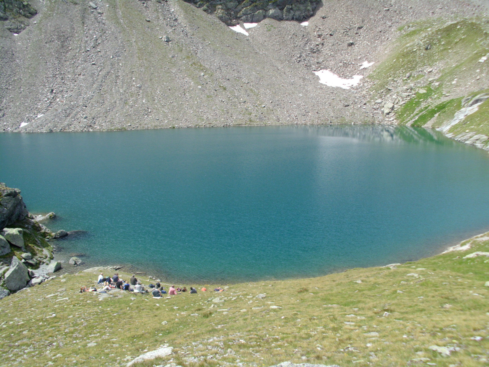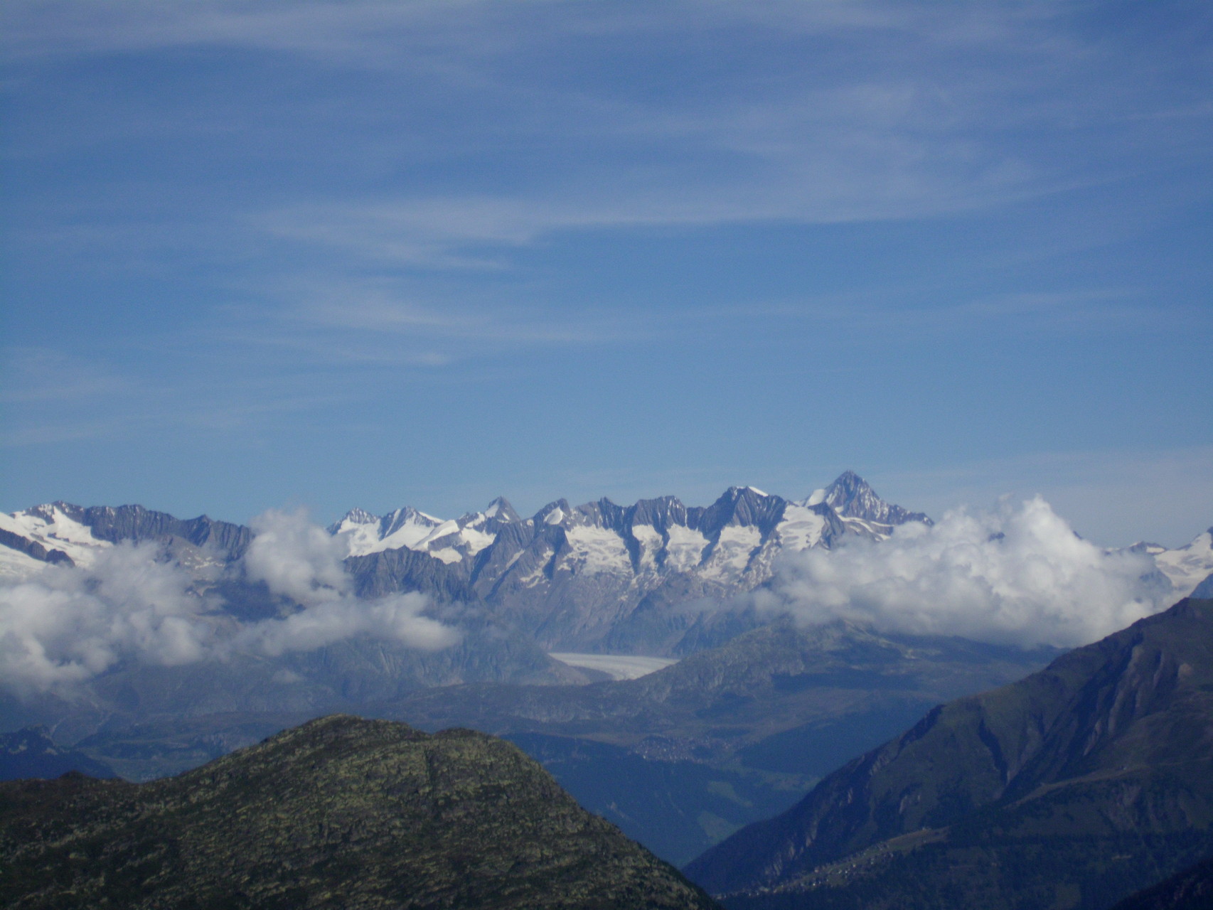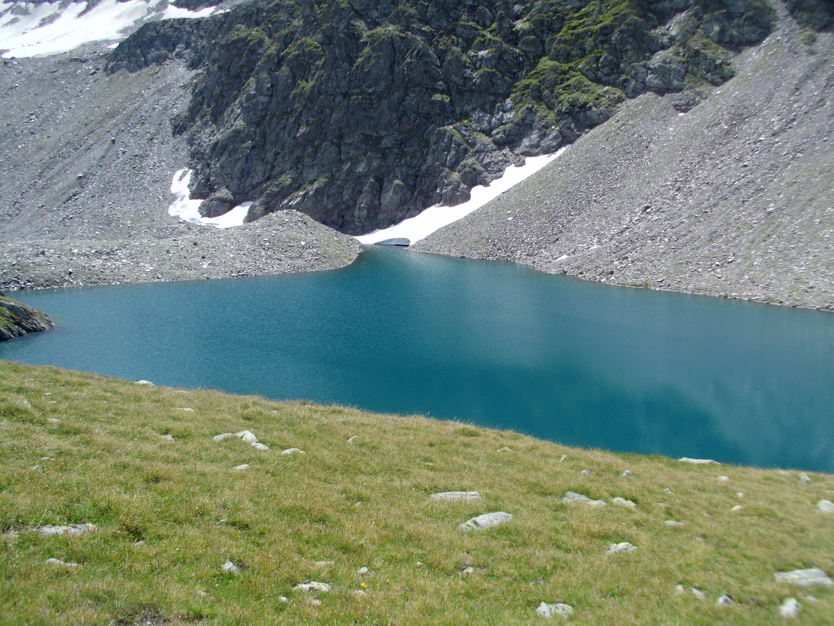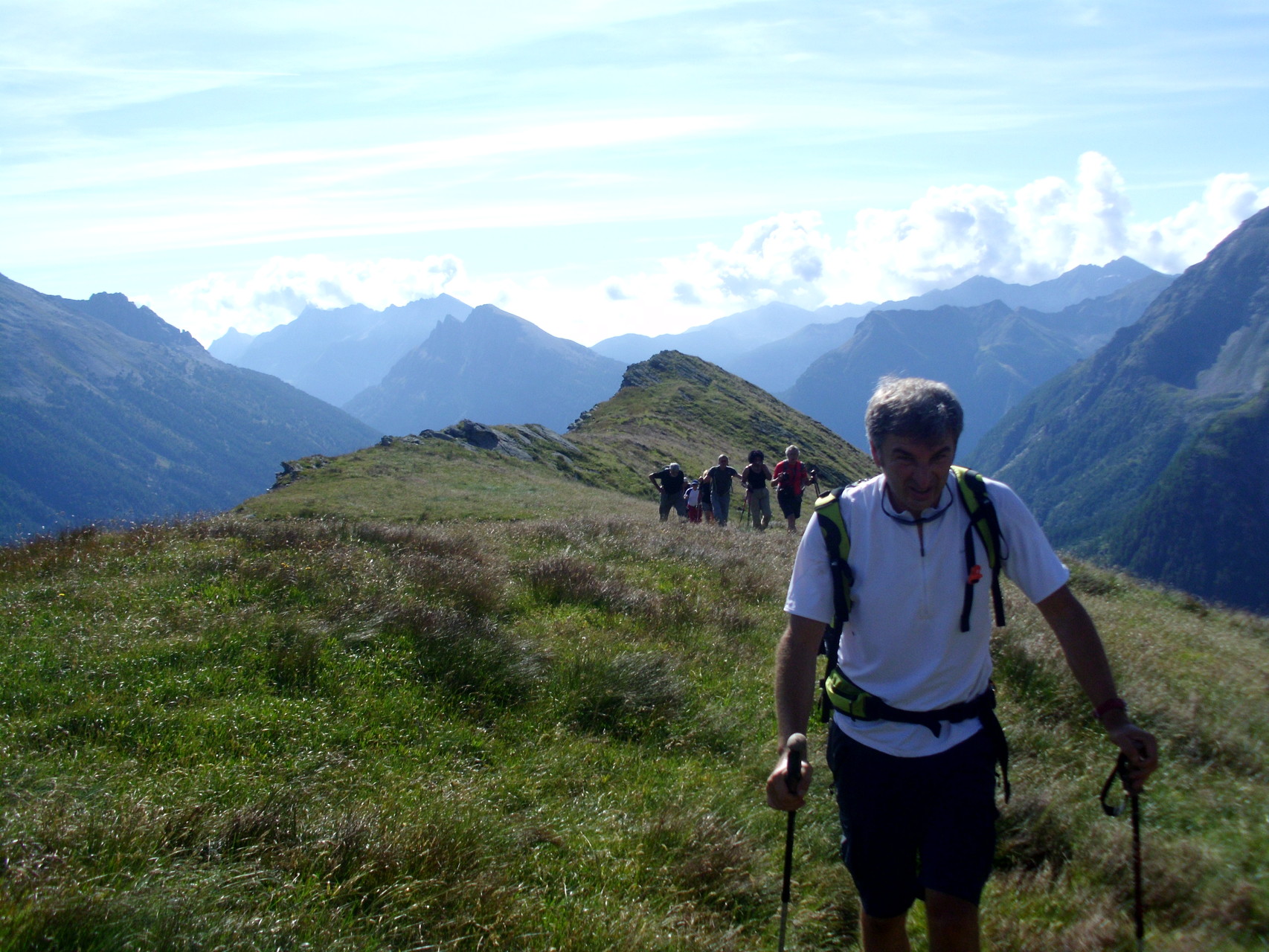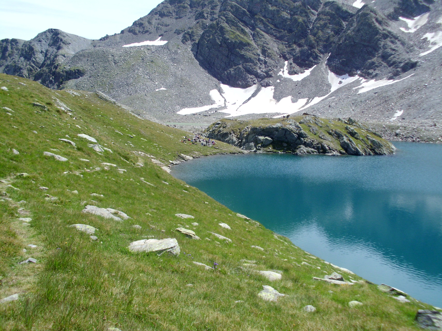 Saliamo su bel sentiero e alle 8,40 arriviamo al bel alpeggio di Rossboden m.1922, breve sosta quindi ripartiamo, la vegetazione finisce ma il percorso è sempre bello e panoramico. Raggiungiamo la cresta dove godiamo della magnifica vista sul Passo del Sempione. Proseguiamo in cresta fino al monte Rossboden m.2550, quindi scendiamo su ripida pietraia fino al lago Sirwoltesee m.2400 circa, sono le 11,50. Carlo decide di fare un tuffo nel lago (vedi fotogallery), l'acqua è gelida ed esce quasi subito.