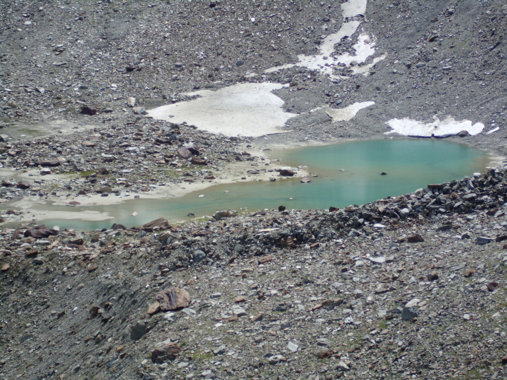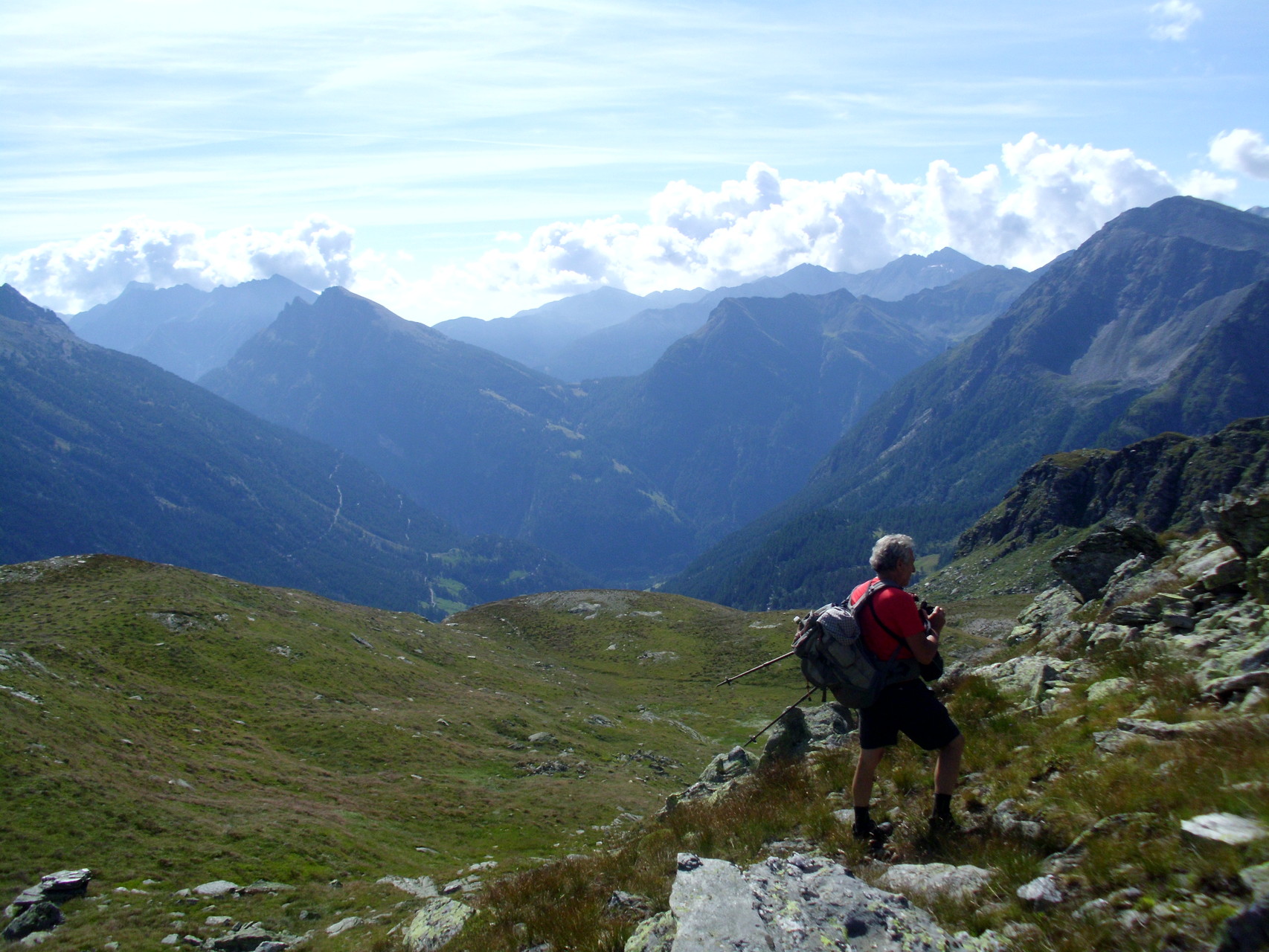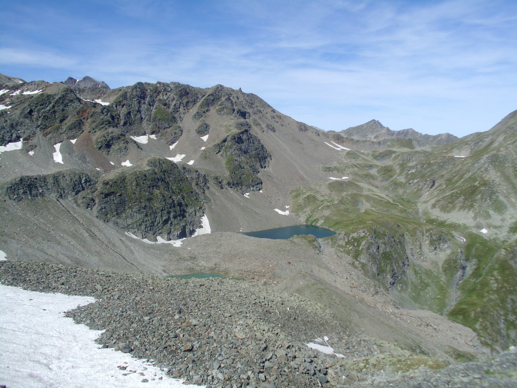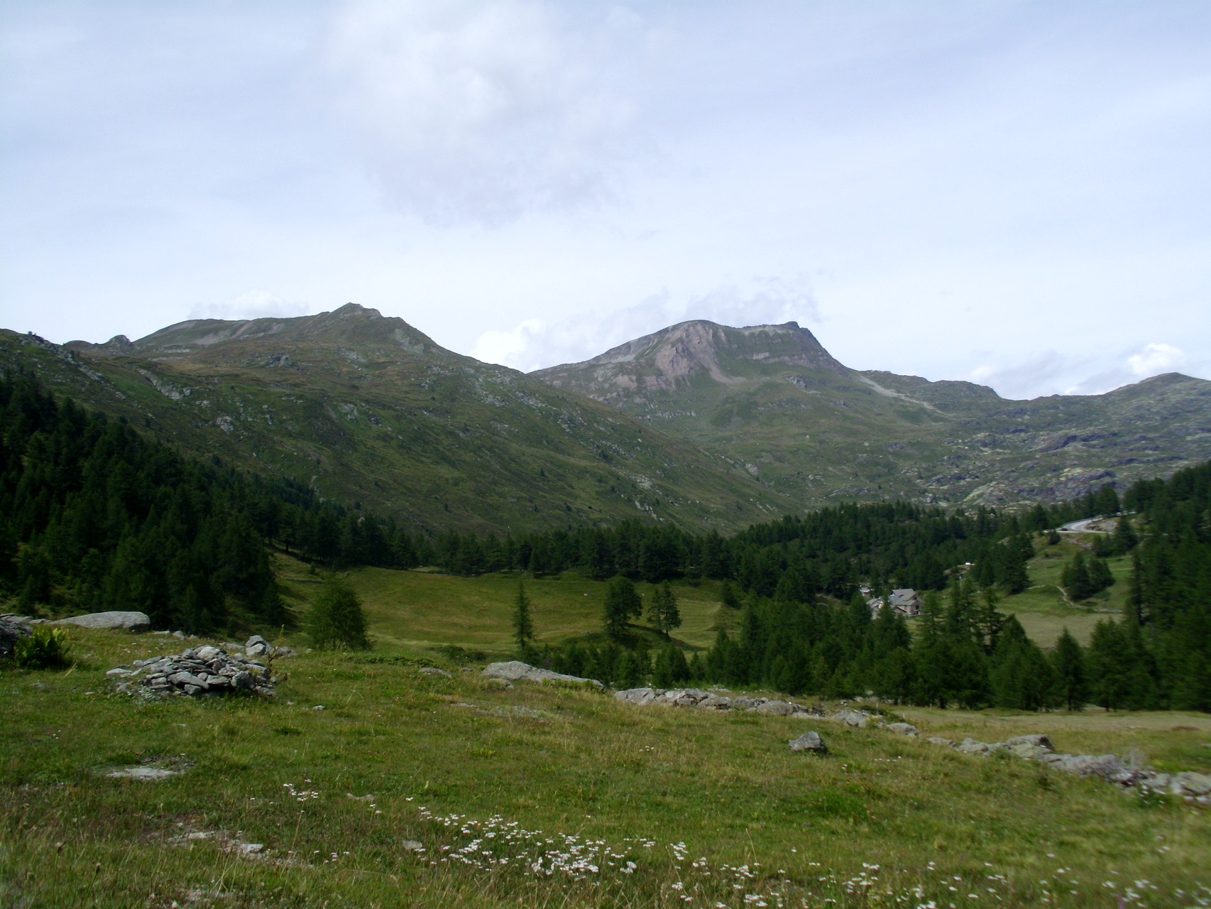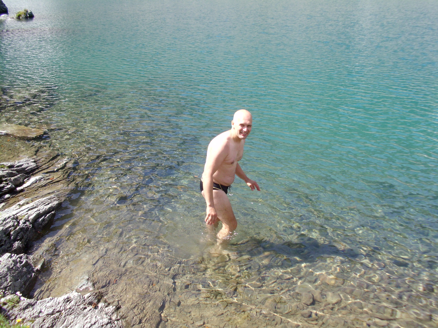 Saliamo su bel sentiero e alle 8,40 arriviamo al bel alpeggio di Rossboden m.1922, breve sosta quindi ripartiamo, la vegetazione finisce ma il percorso è sempre bello e panoramico. Raggiungiamo la cresta dove godiamo della magnifica vista sul Passo del Sempione. Proseguiamo in cresta fino al monte Rossboden m.2550, quindi scendiamo su ripida pietraia fino al lago Sirwoltesee m.2400 circa, sono le 11,50. Carlo decide di fare un tuffo nel lago (vedi fotogallery), l'acqua è gelida ed esce quasi subito.