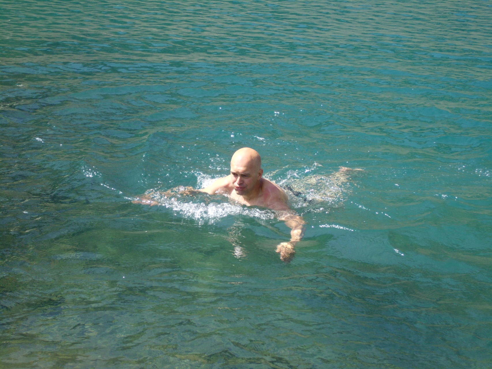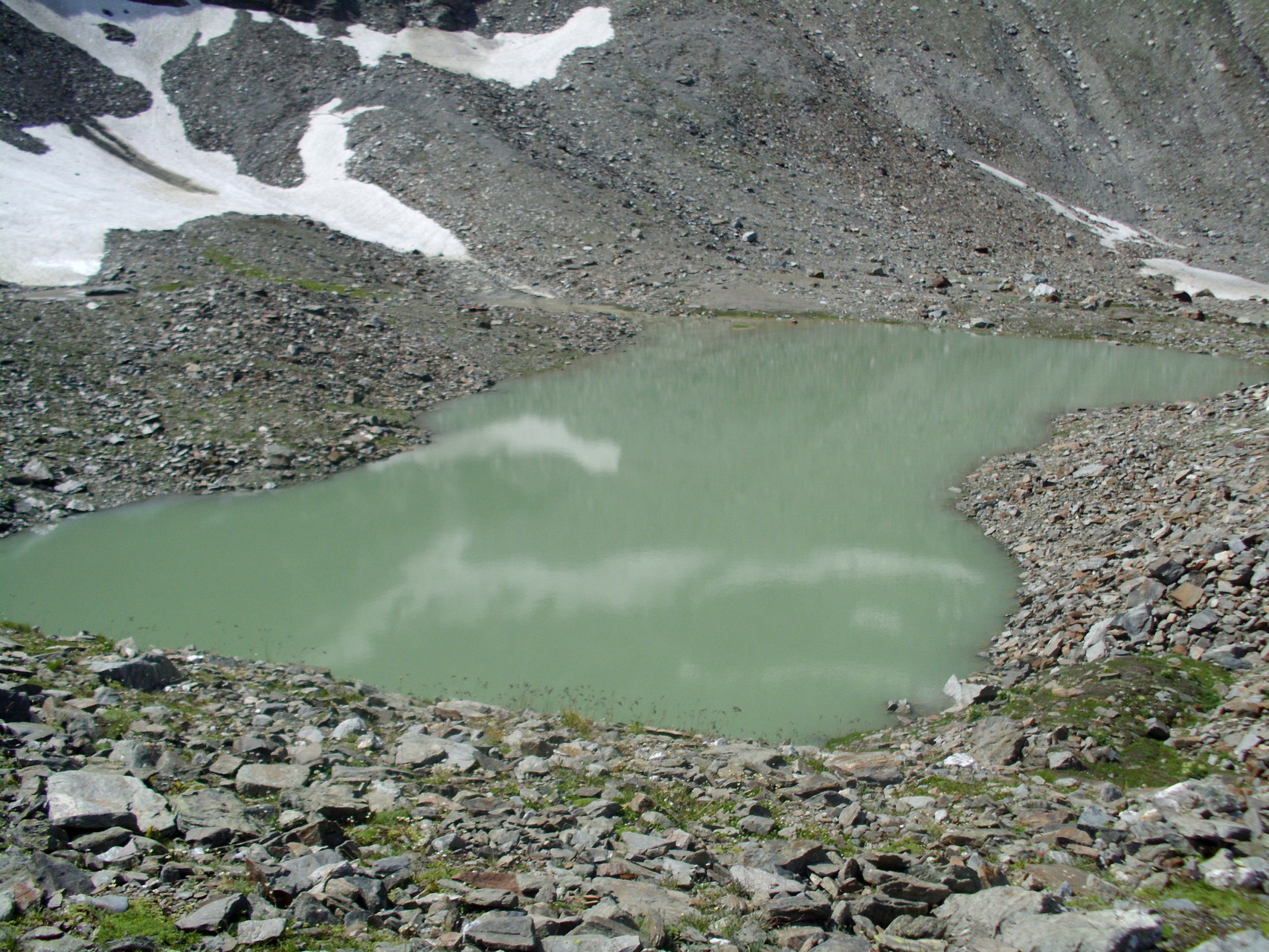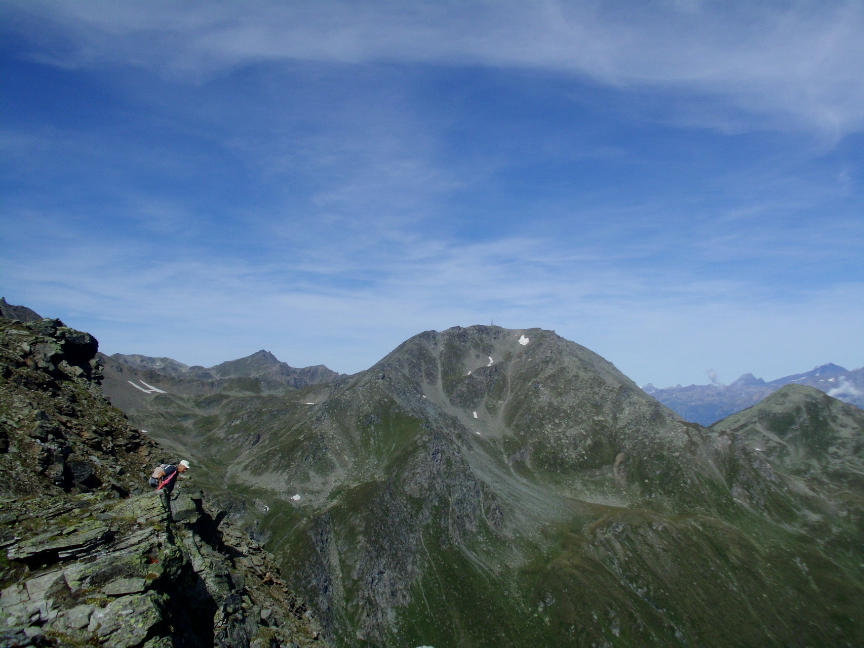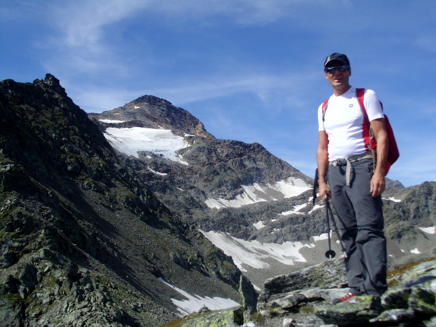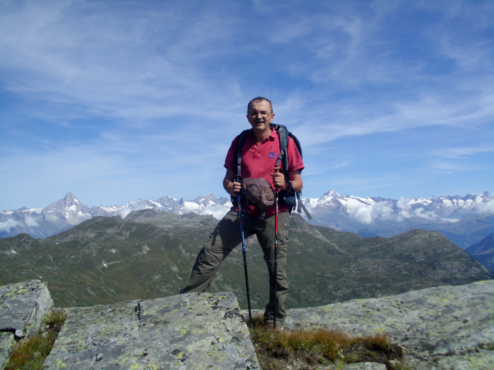 Saliamo su bel sentiero e alle 8,40 arriviamo al bel alpeggio di Rossboden m.1922, breve sosta quindi ripartiamo, la vegetazione finisce ma il percorso è sempre bello e panoramico. Raggiungiamo la cresta dove godiamo della magnifica vista sul Passo del Sempione. Proseguiamo in cresta fino al monte Rossboden m.2550, quindi scendiamo su ripida pietraia fino al lago Sirwoltesee m.2400 circa, sono le 11,50. Carlo decide di fare un tuffo nel lago (vedi fotogallery), l'acqua è gelida ed esce quasi subito.