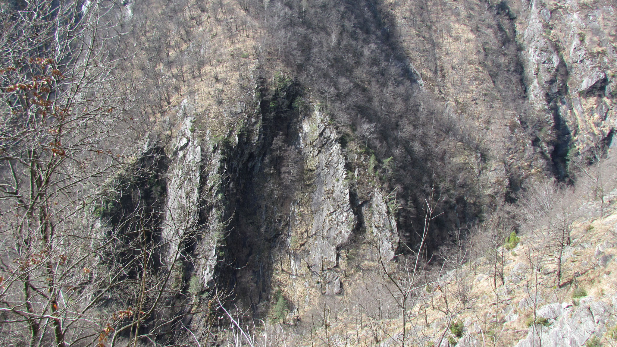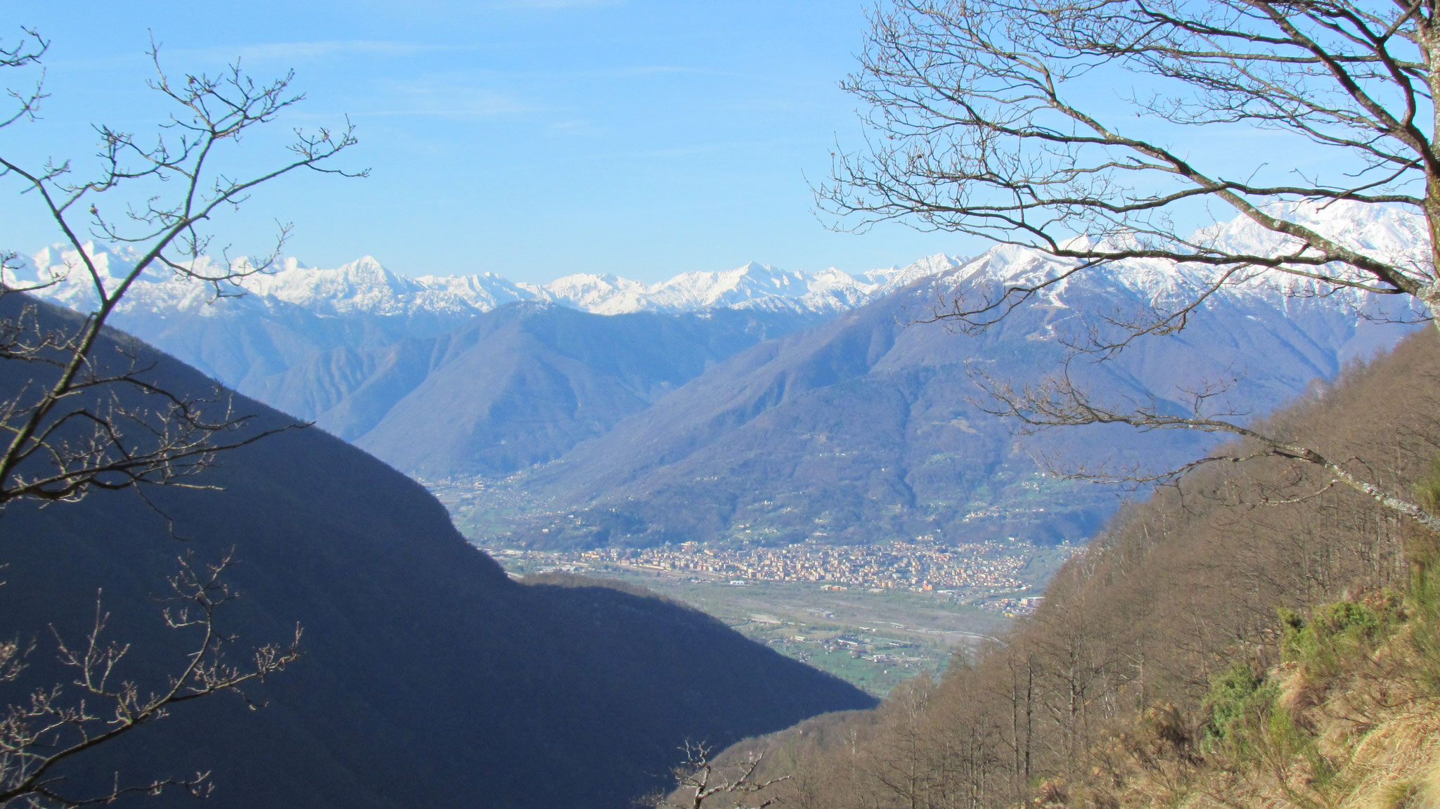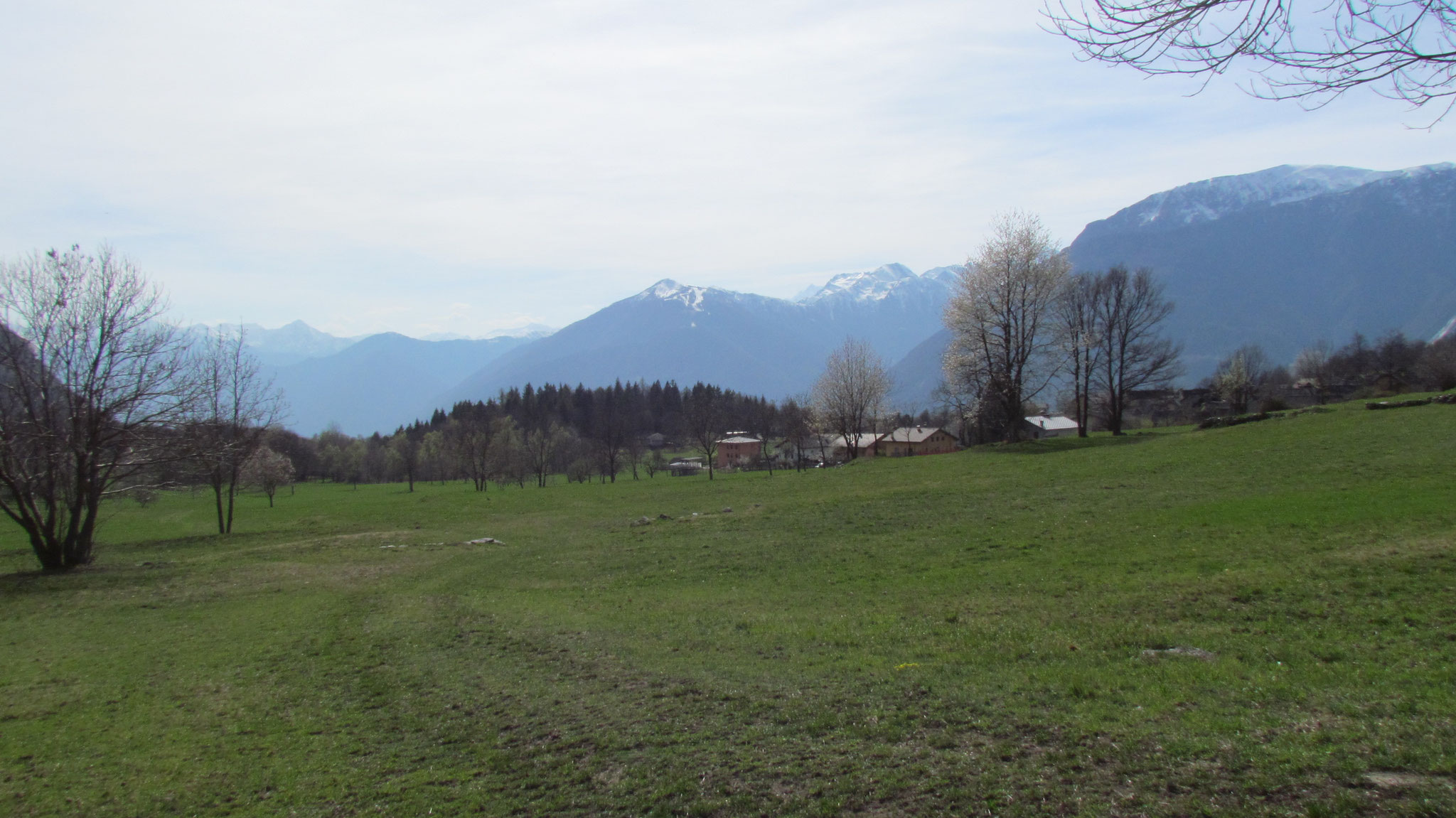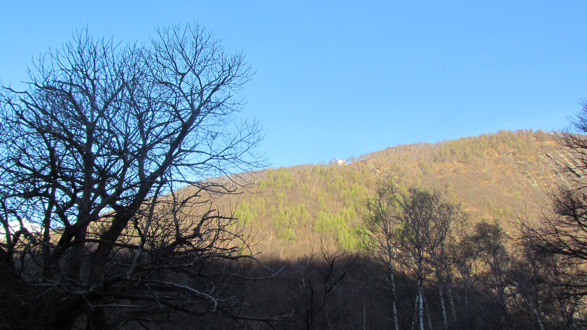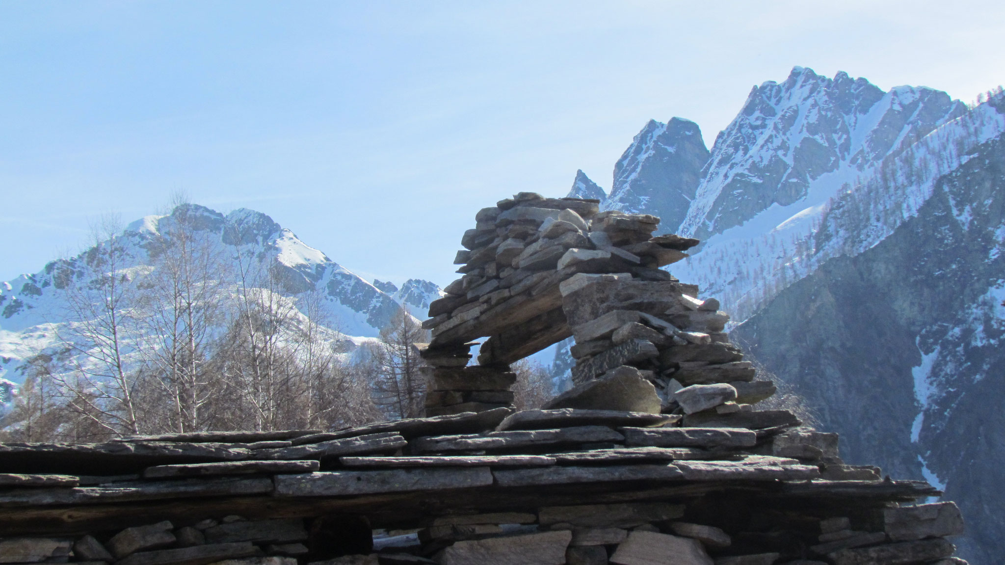 Attraversiamo il paese fino al lavatoio, poi giriamo a destra, usciamo nei prati e raggiungiamo la Cappella di Cimavalle m. 754, sono le 7,50. Prendiamo il sentiero che scende a destra della Cappella nella valle Isorno, perdiamo circa 150 metri di quota fino al ponte del Diavolo m. 600 che raggiungiamo alle 8,05. Risaliamo la sponda opposta e arriviamo alle prime baite di Aulogna alle 8,35. Saliamo fino ad arrivare alle ultime baite a quota 924 e alla casetta dei guardiani di una condotta di acqua. Sono le 8,55. Sosta per la colazione e ripartenza alle 9,10.
