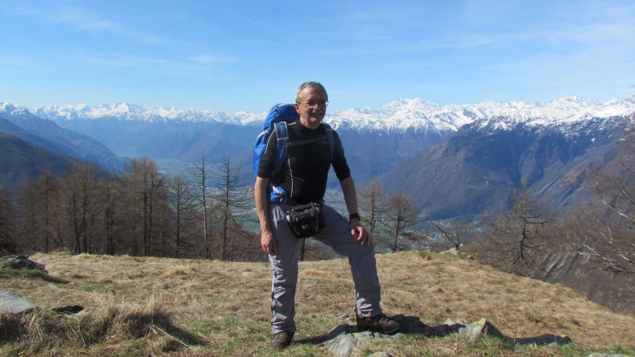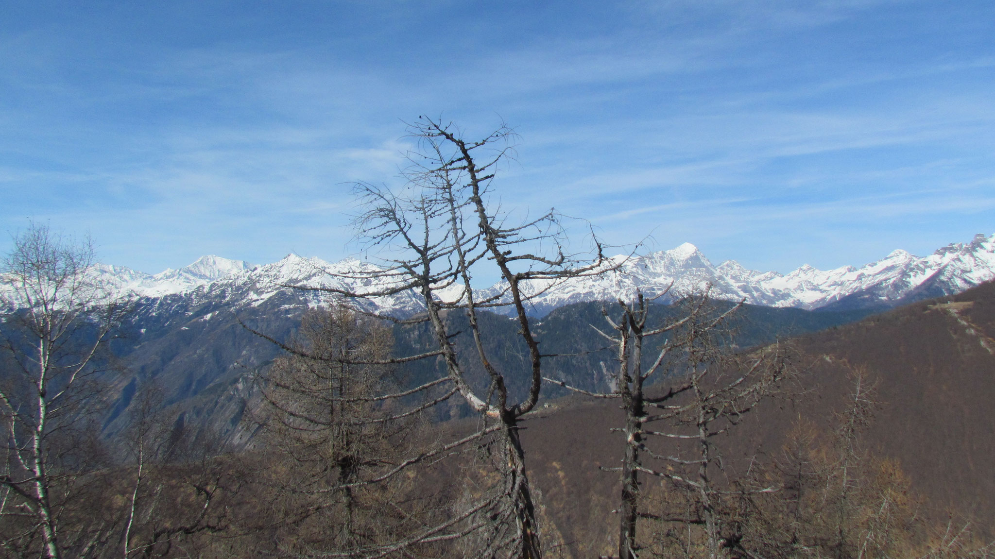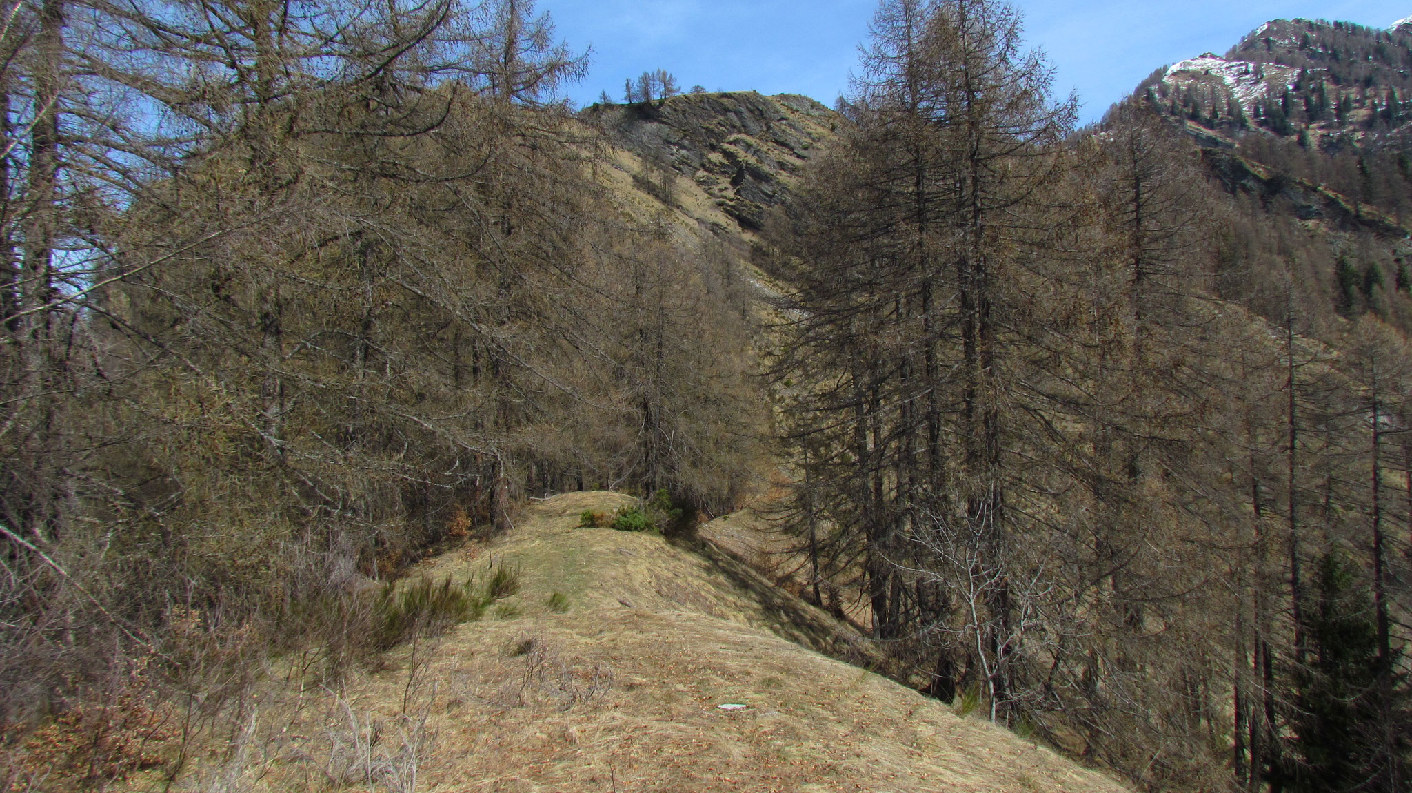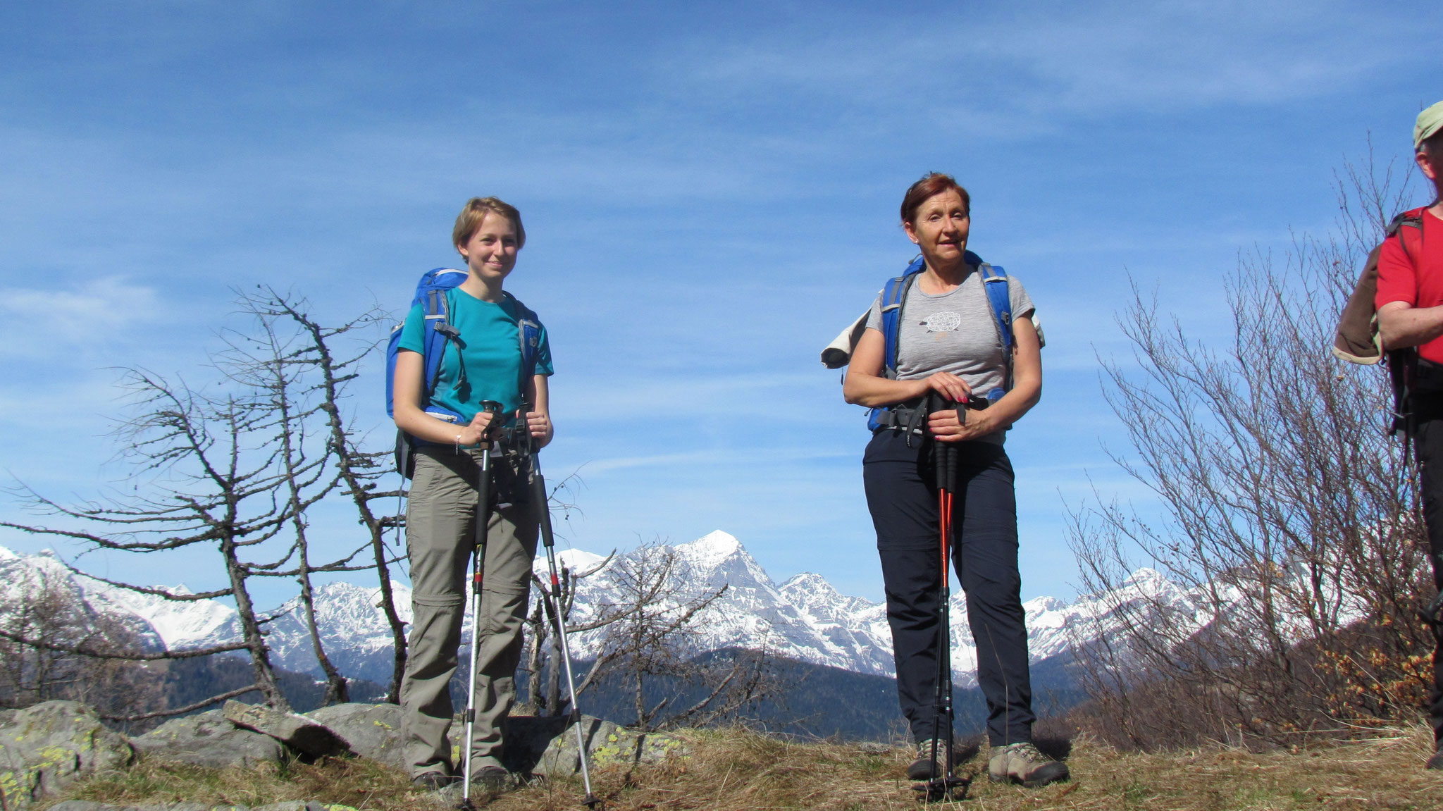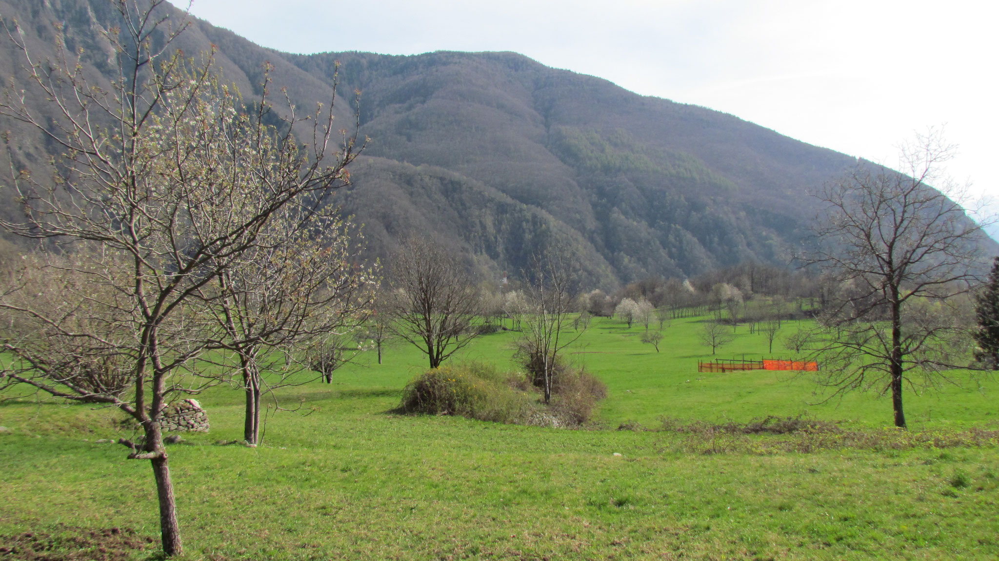 Attraversiamo il paese fino al lavatoio, poi giriamo a destra, usciamo nei prati e raggiungiamo la Cappella di Cimavalle m. 754, sono le 7,50. Prendiamo il sentiero che scende a destra della Cappella nella valle Isorno, perdiamo circa 150 metri di quota fino al ponte del Diavolo m. 600 che raggiungiamo alle 8,05. Risaliamo la sponda opposta e arriviamo alle prime baite di Aulogna alle 8,35. Saliamo fino ad arrivare alle ultime baite a quota 924 e alla casetta dei guardiani di una condotta di acqua. Sono le 8,55. Sosta per la colazione e ripartenza alle 9,10.