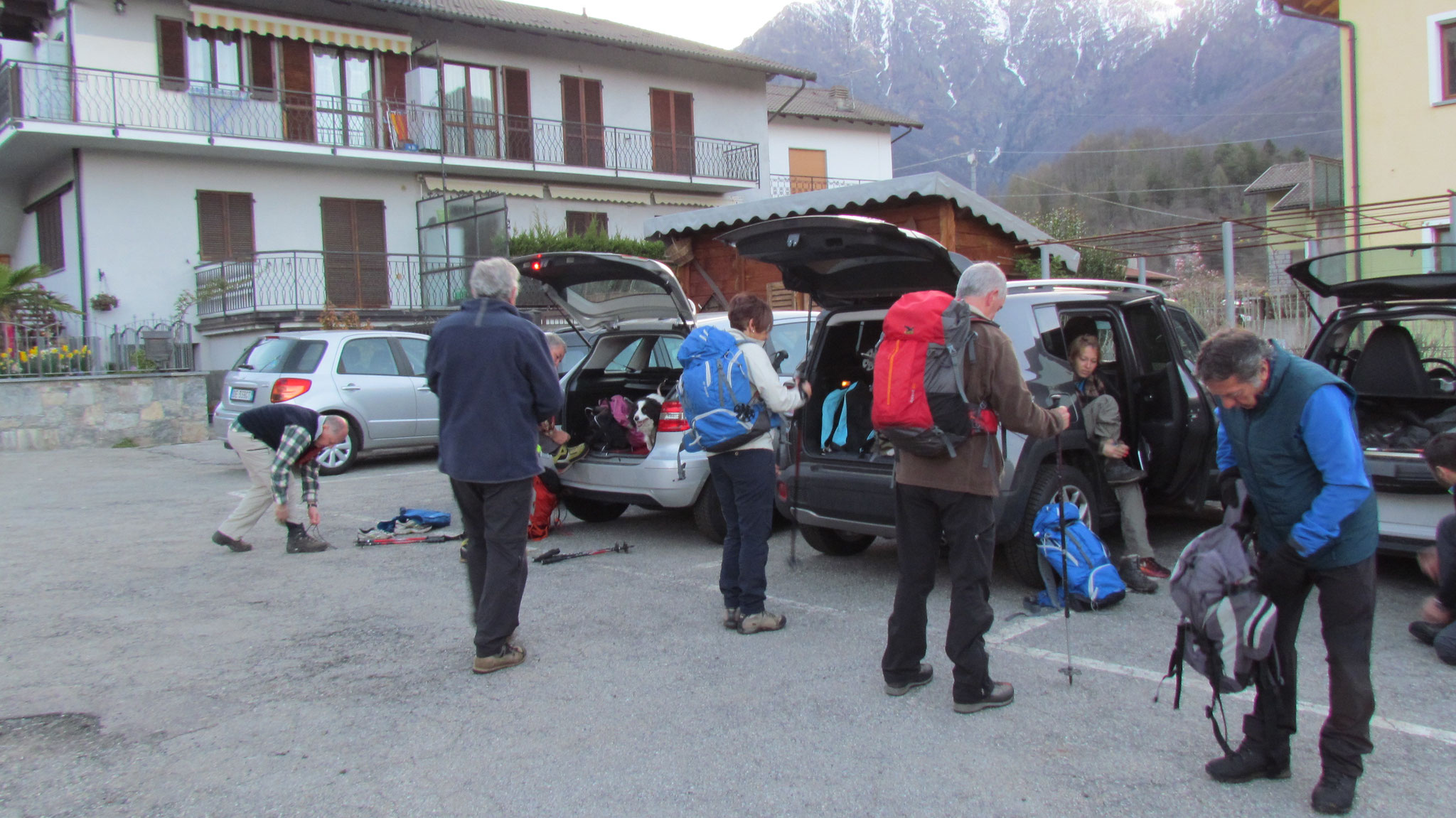 Dopo il caffè risaliamo in auto e saliamo alla frazione di Altoggio m. 742 dove parcheggiamo nella piazzetta. Sono le 7,40, il tempo è bello.