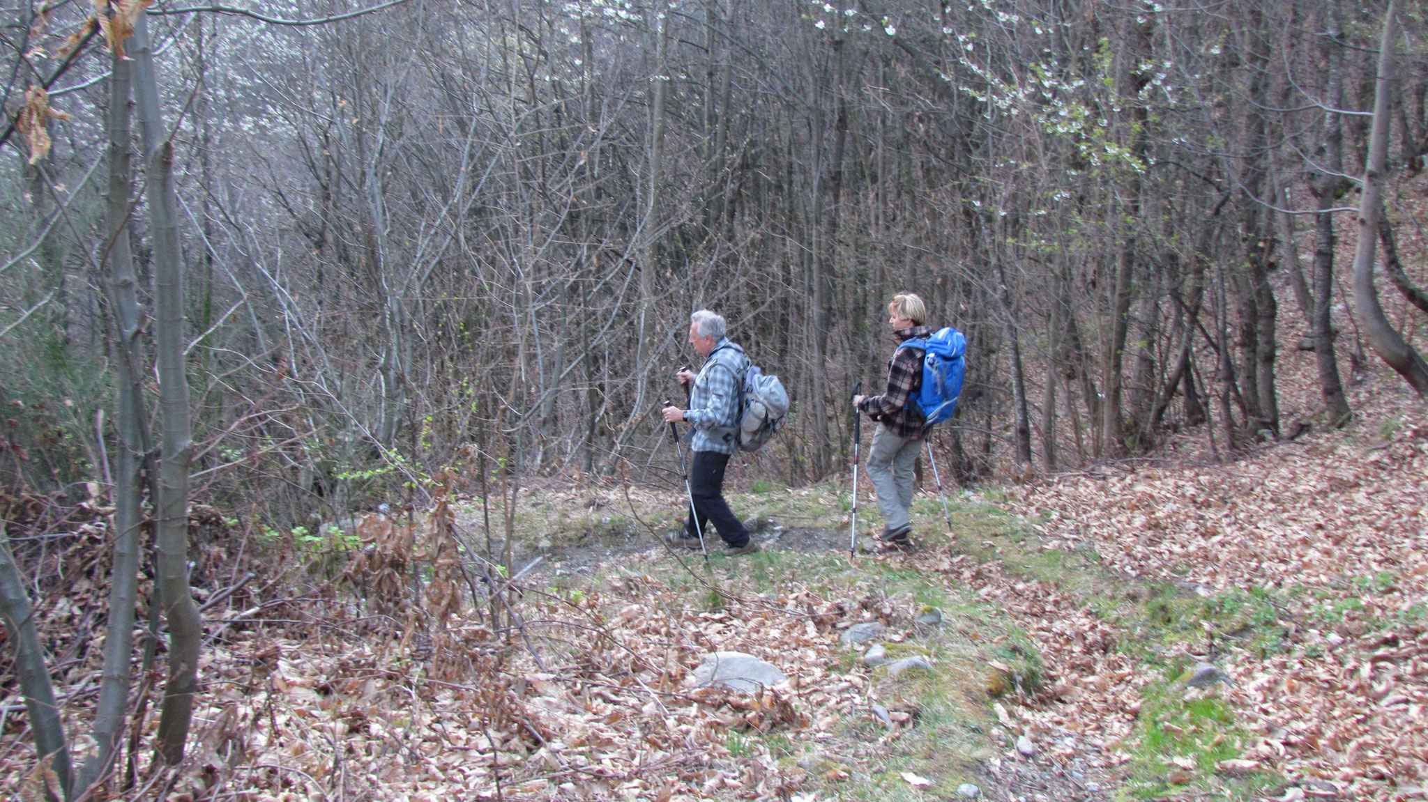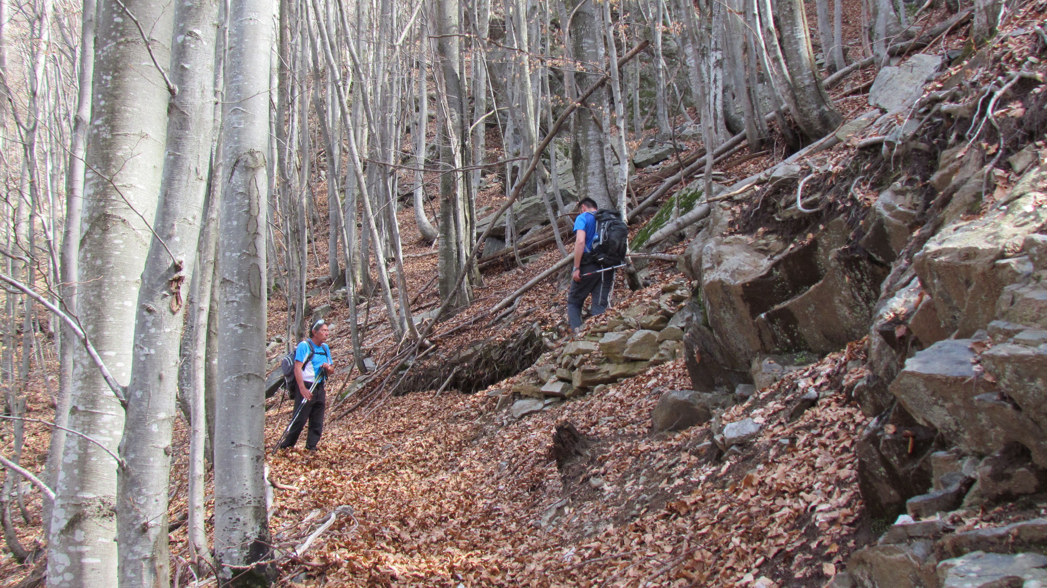 Ripartiamo alle 13,00. Scendiamo a sinistra su un bel sentiero molto ripido, facendo attenzione a non scivolare perché quasi sempre ricoperto da moltissime foglie, in un enorme bosco di faggi fino ad arrivare alla Centrale Cippata alle 13,50.