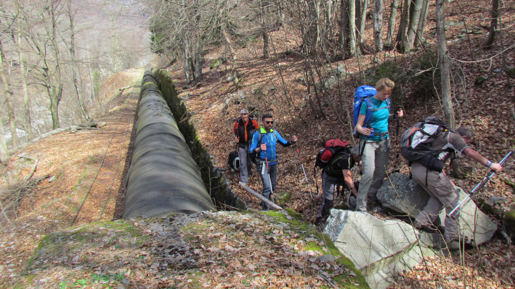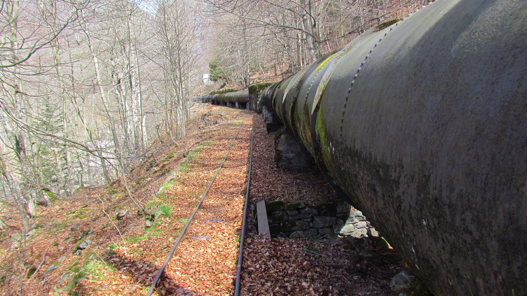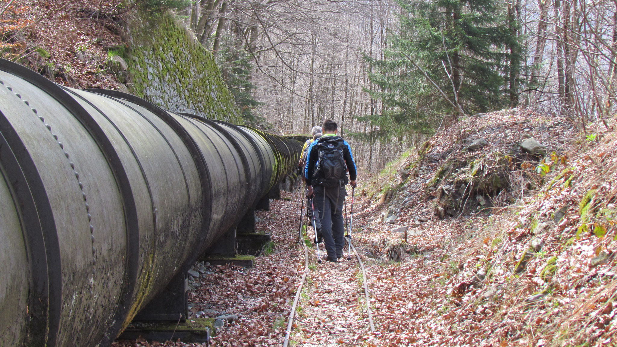Giriamo a sinistra e seguiamo l'enorme condotta dell'acqua, che in piano dopo circa 3 chilometri ci riporta alla casetta dei guardiani alle 14,50.