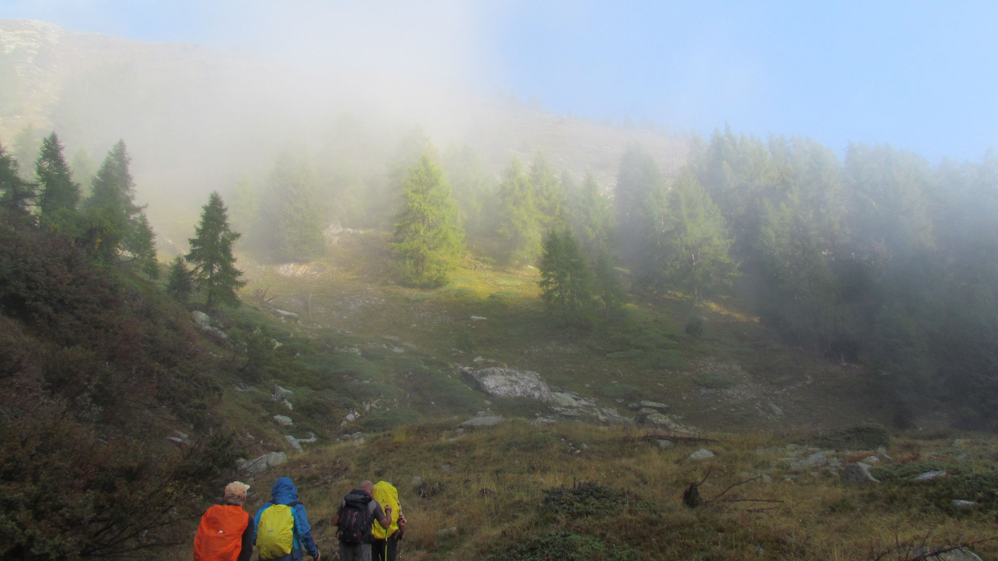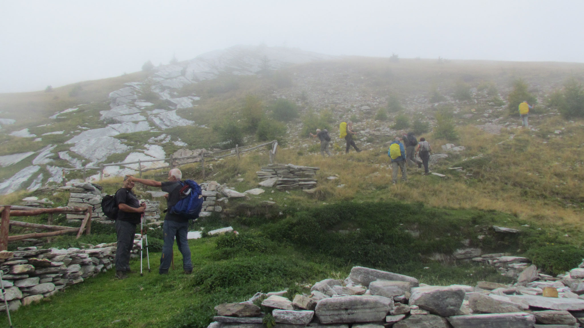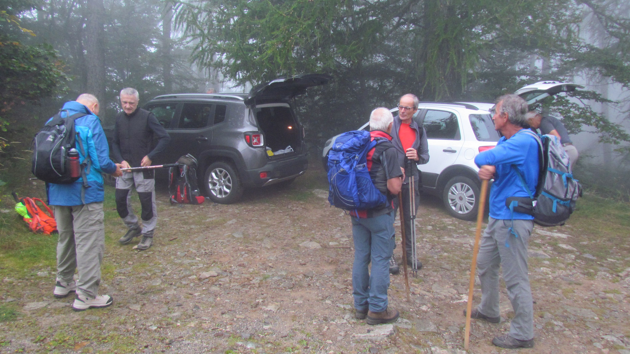 In auto saliamo in Val Agarina fino all'Alpe Giovera m. 1620 circa dove le lasciamo. Sono le 8,00, il tempo è brutto, siamo nella nebbia.