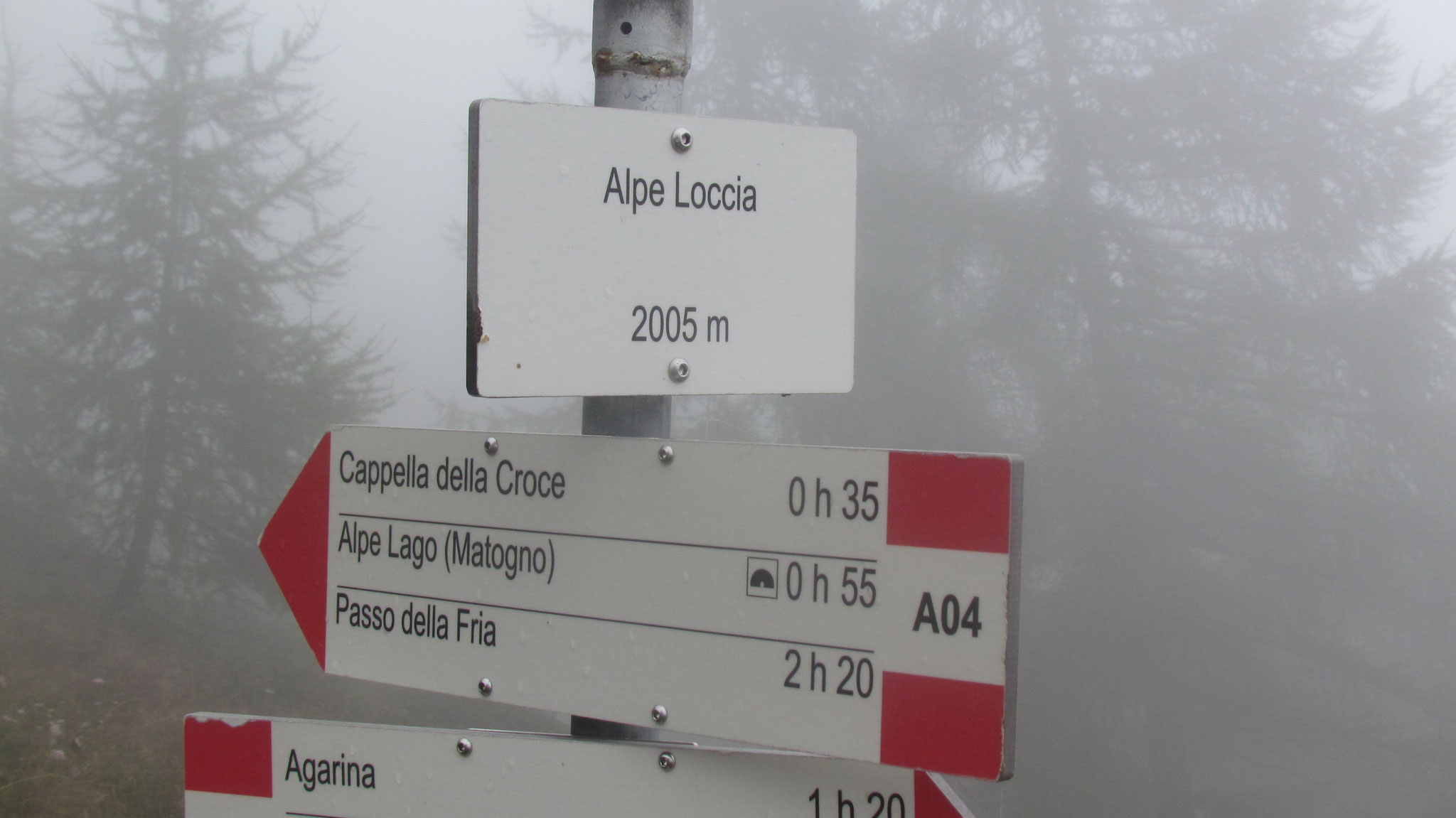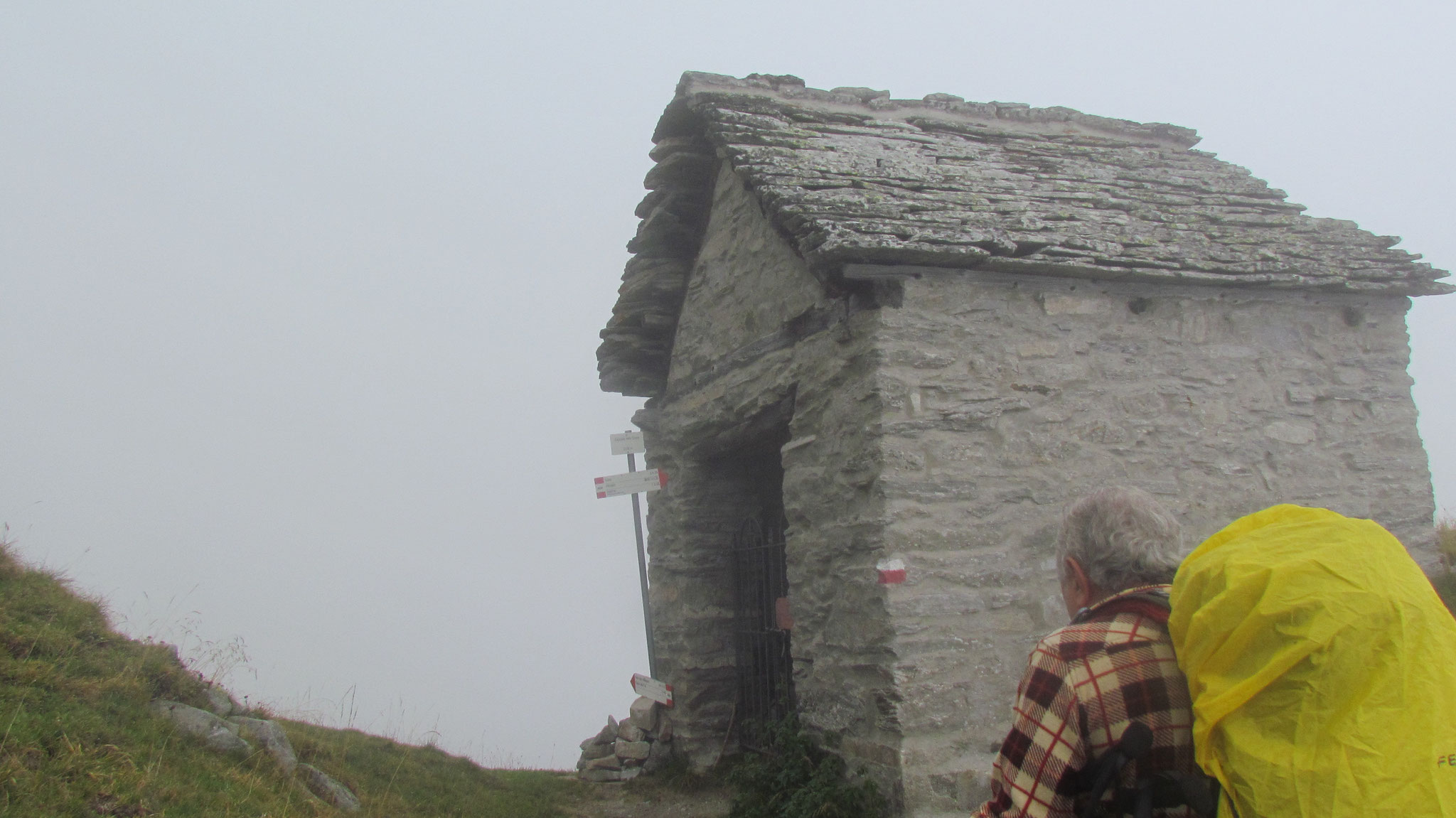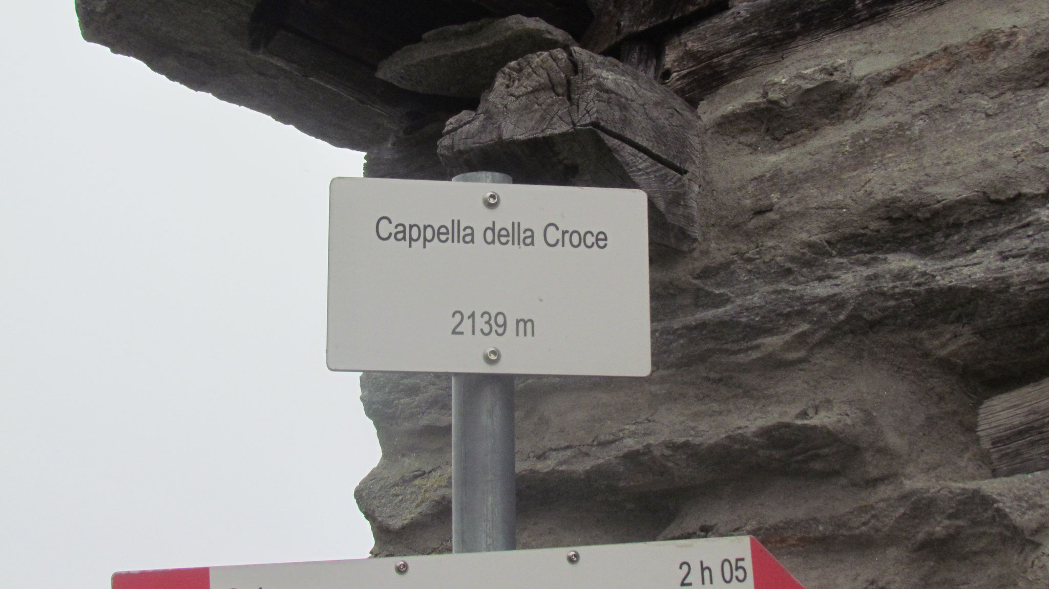 Proseguiamo, superiamo l'Alpe Loccia m. 2005 alle 10,25. Poco dopo affrontiamo l'ultimo tratto, ora più ripido che ci porta a scollinare alla Cappella della Croce m. 2183 (il cartello indicatore è sbagliato, segna 2139).