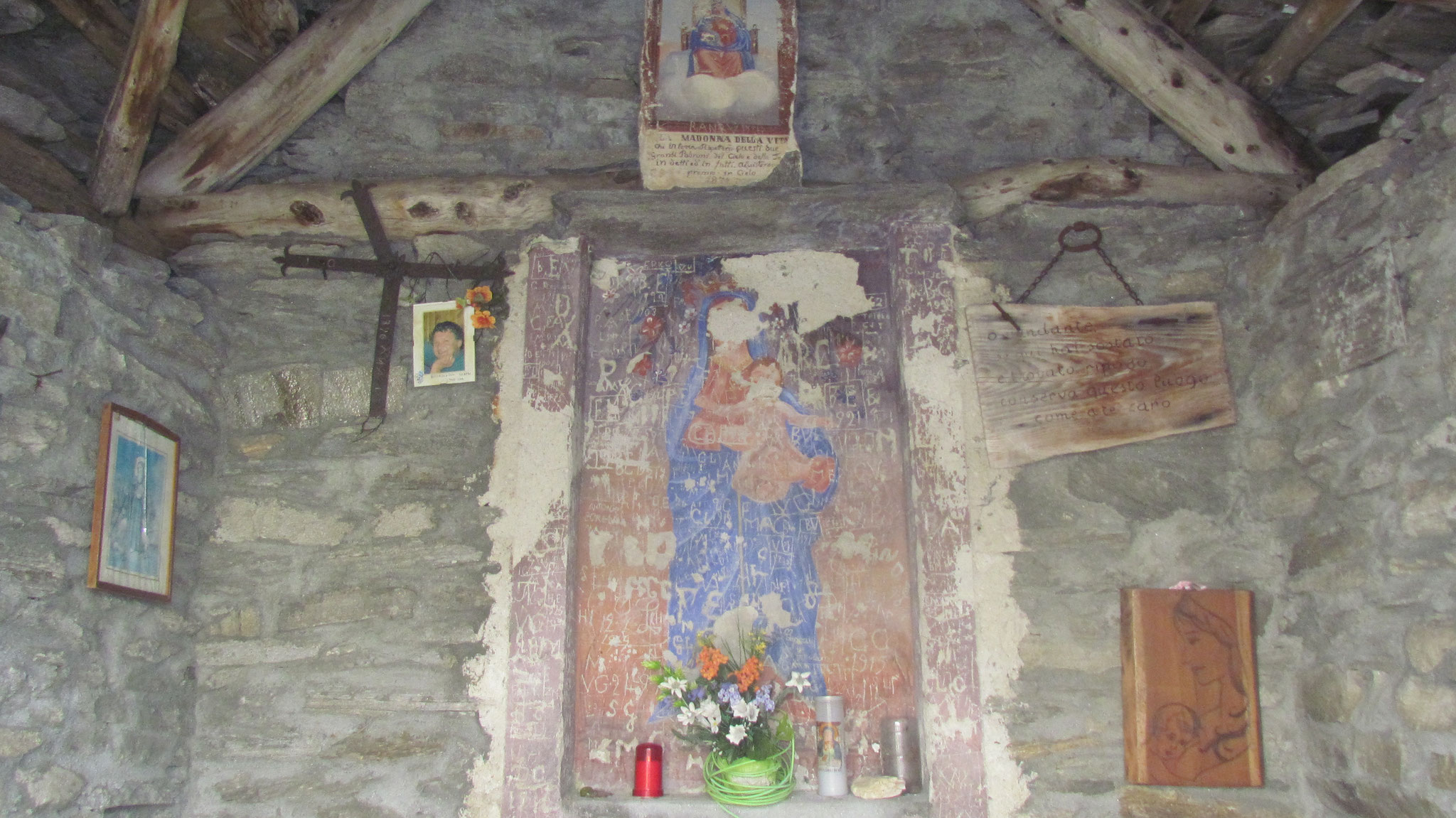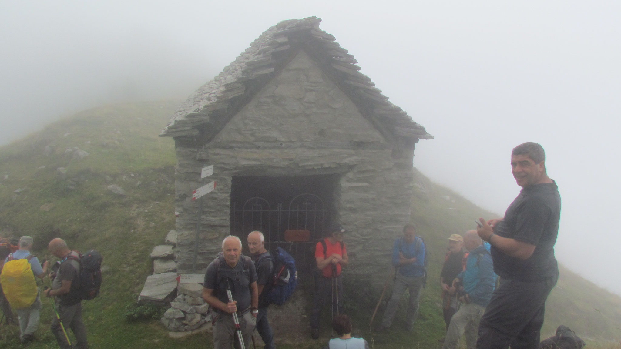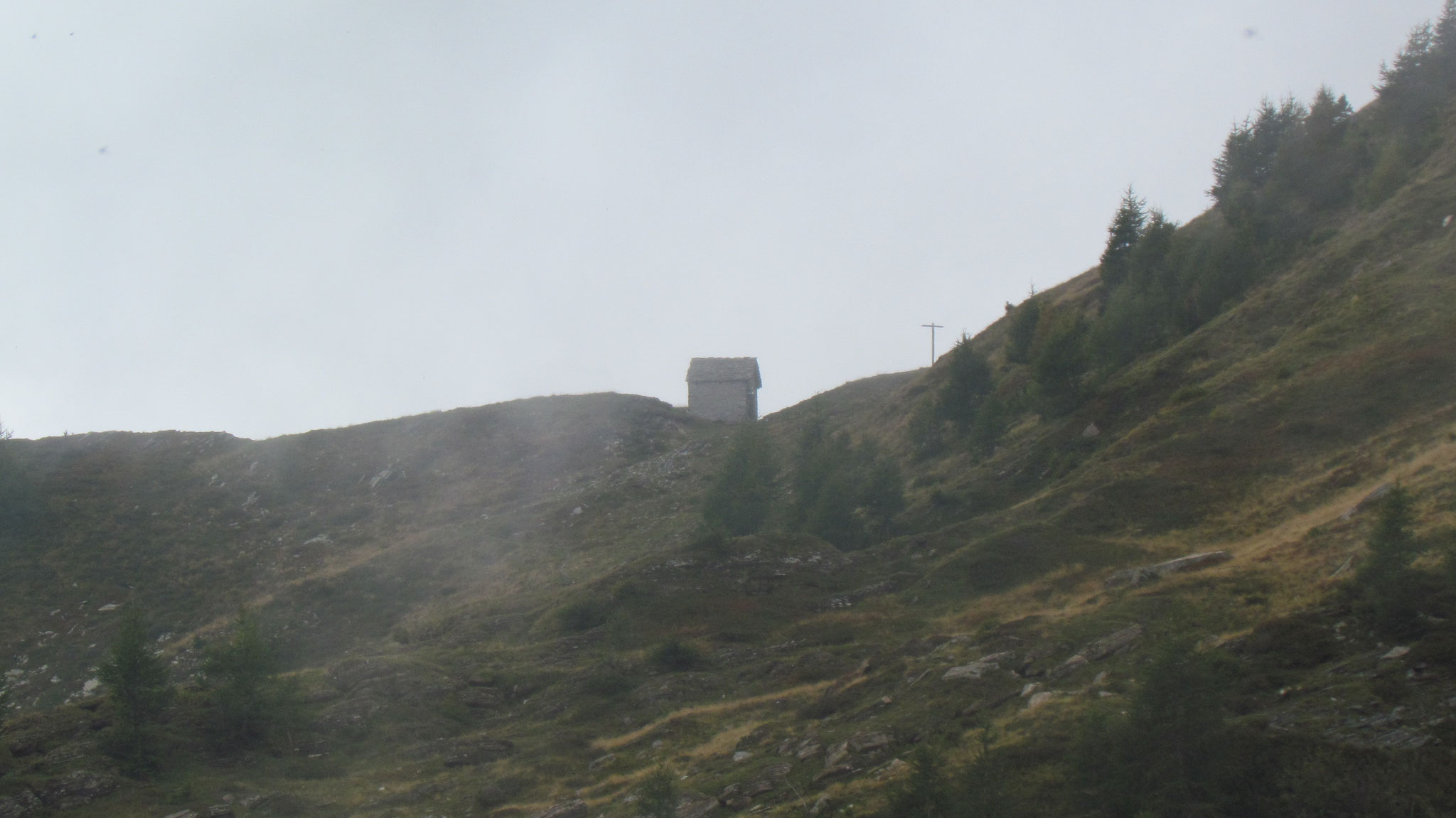 Proseguiamo, superiamo l'Alpe Loccia m. 2005 alle 10,25. Poco dopo affrontiamo l'ultimo tratto, ora più ripido che ci porta a scollinare alla Cappella della Croce m. 2183 (il cartello indicatore è sbagliato, segna 2139).