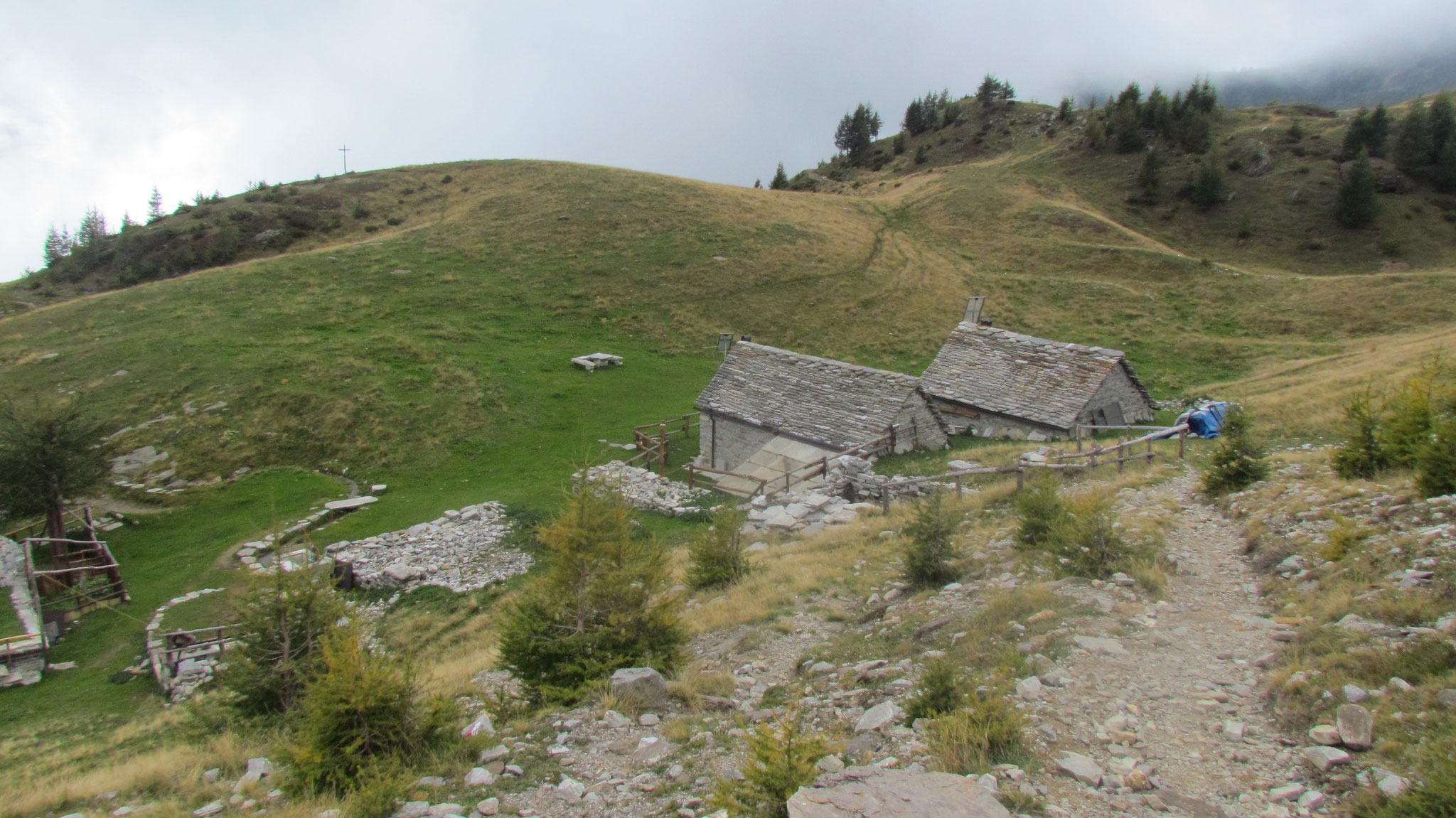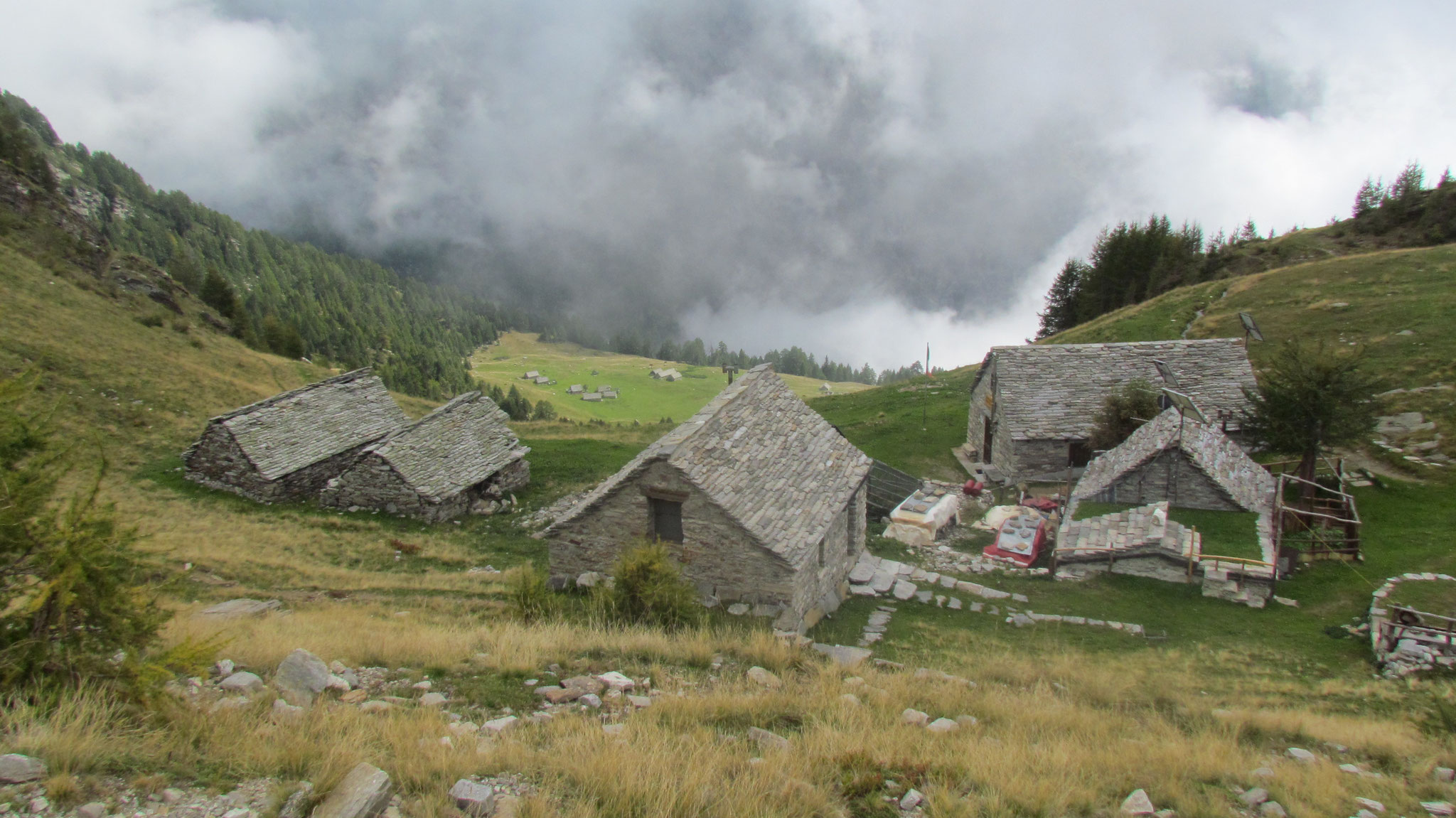Raggiungiamo la cappella della Croce alle 13,45, continuiamo, superiamo l'Alpe Loccia alle 14,15 e arriviamo all'Alpe Giovera alle 16,10.