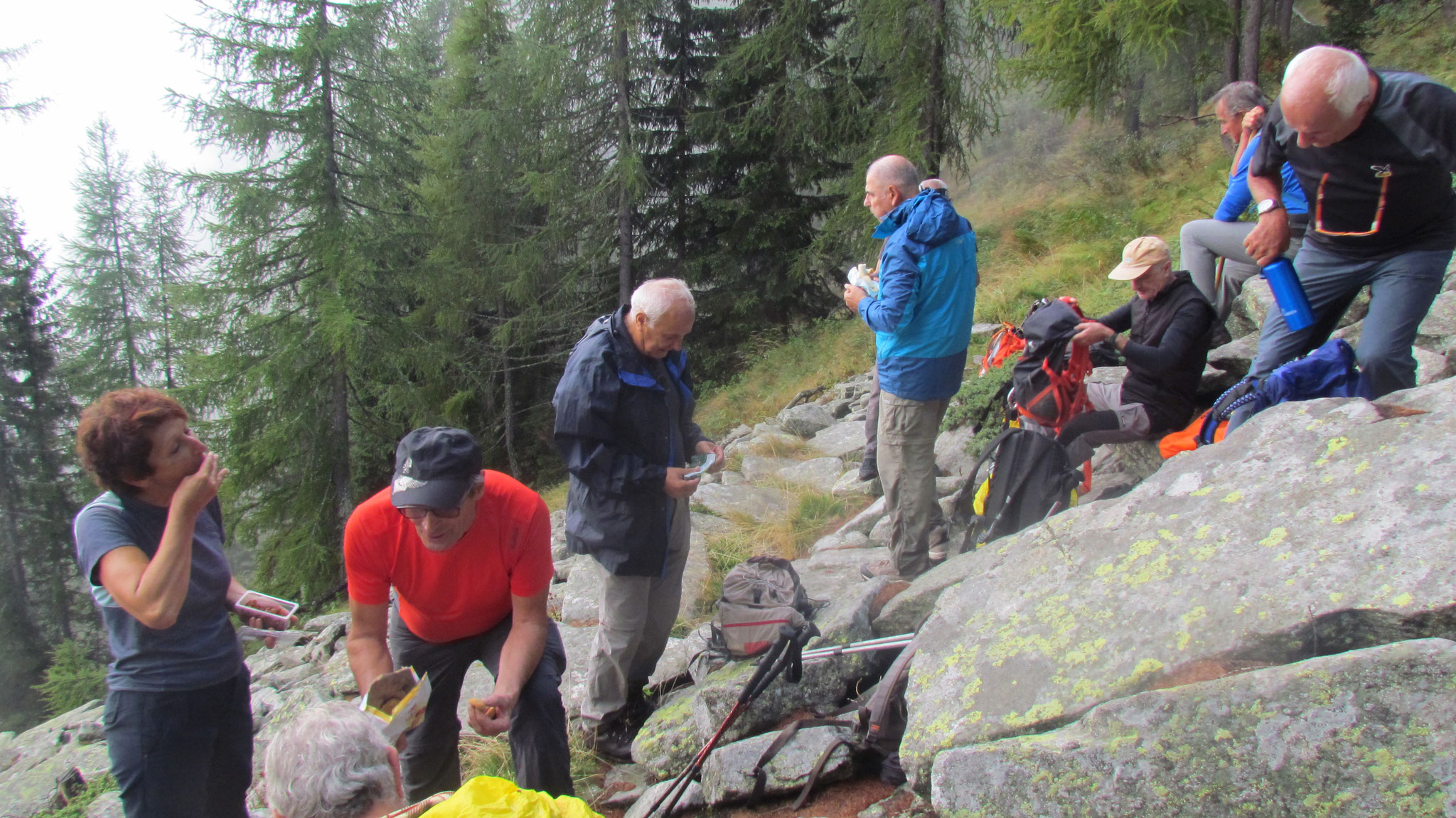 Andiamo a Gravellona dove ci stanno aspettando Gabrio e Armando. Ci rechiamo a Montecrestese dove ci raggiungono: Stefano, Gianpaolo, Franco, Renzo, Fabio e Franco M. (un amico di Fabio). Totale 13.