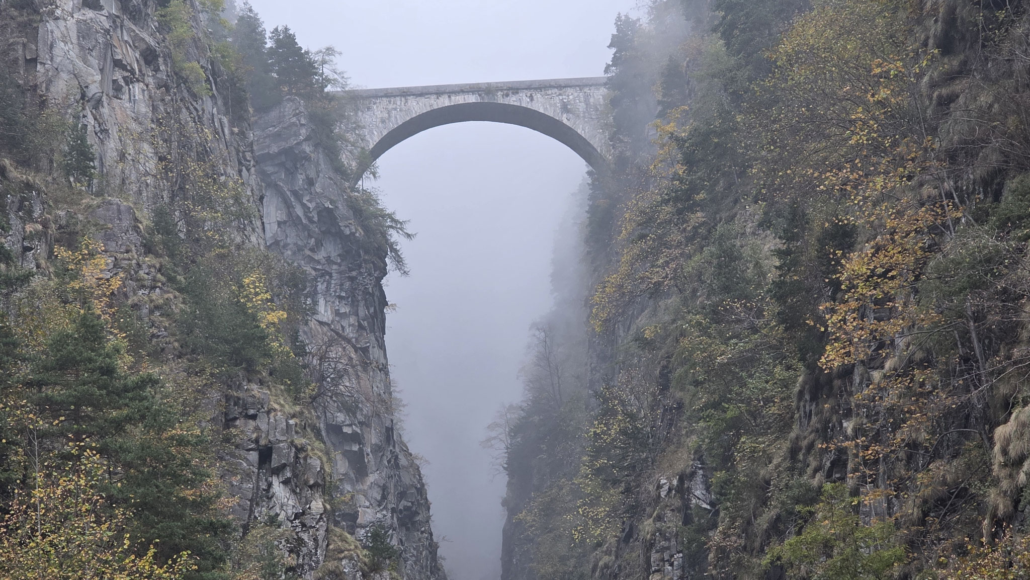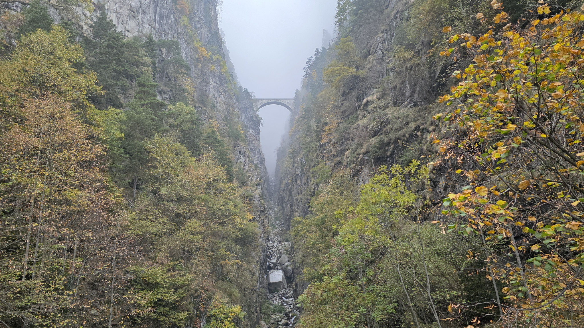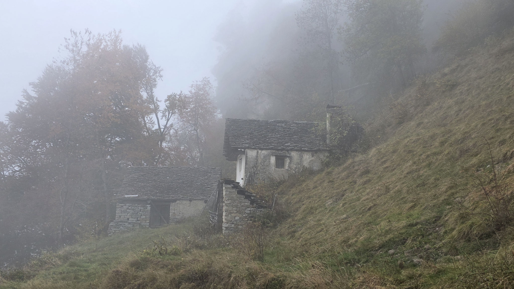 Proseguiamo per un breve tratto sulla strada, poi prendiamo il sentiero per Bugliaga. Alle 9,05 giriamo a sinistra e scendiamo al ponte del diavolino m. 1231 alle 9,25. Risaliamo dalla parte opposta su sentiero non molto agevole e ripido che ci porta sulla strada poco prima di Bugliaga m. 1314 dove arriviamo alle 10,10. Saliamo per un tratto sulla strada, quindi, alle 10,20 ad un bivio giriamo a destra, ad un nuovo bivio, alle 10,40 proseguiamo sempre a destra e arriviamo all'Alpe Casalavero m. 1549 alle 10,55.
