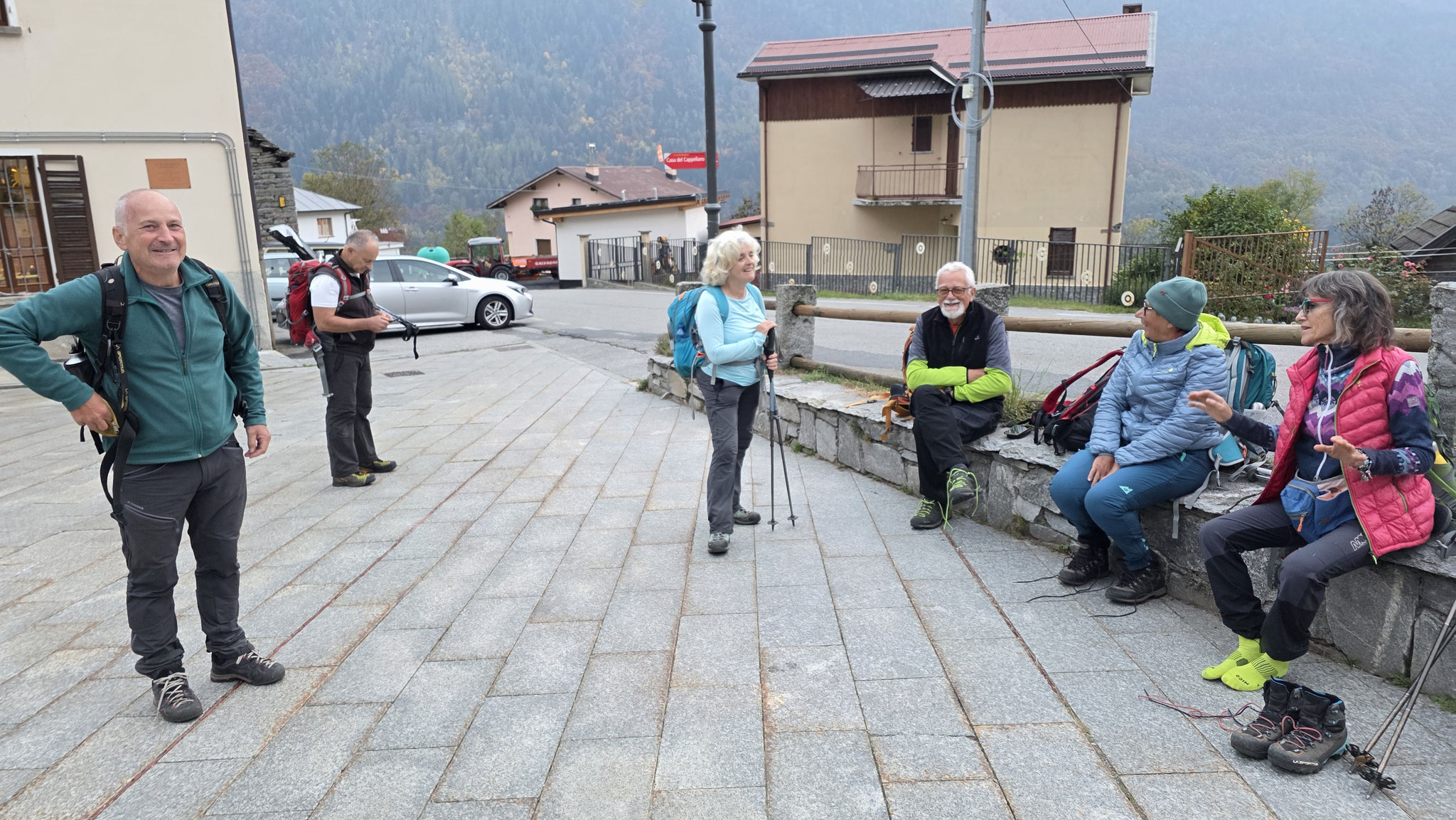 Saliamo in Val Divedro, a Varzo saliamo a destra e prendiamo la strada per San Domenico, ad un bivio giriamo a sinistra e andiamo a Trasquera m. 1090 dove parcheggiamo nei pressi del municipio. Li ci stanno aspettando Nadia N. Lidia e Roberto. Totale siamo in 12. Sono le 8,50, il tempo è nuvolo.