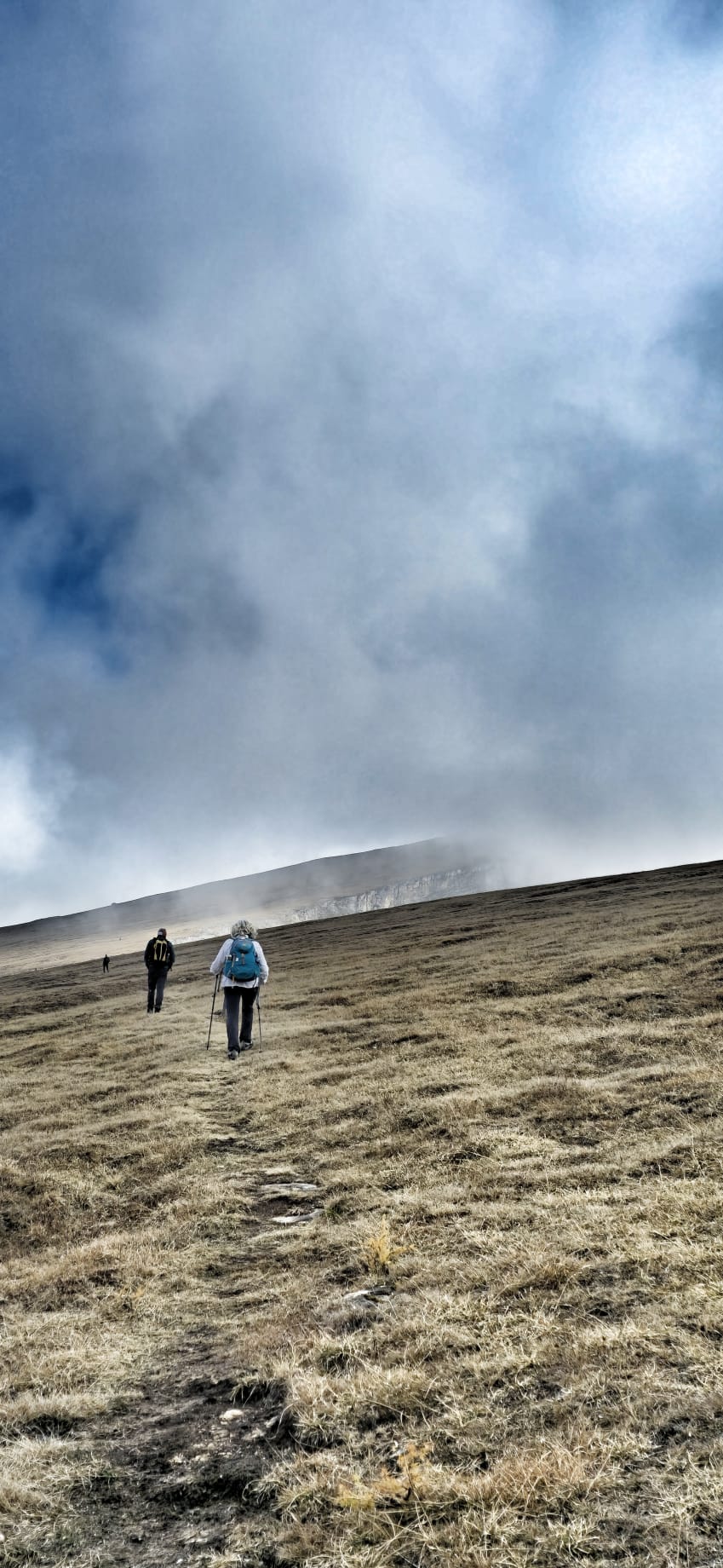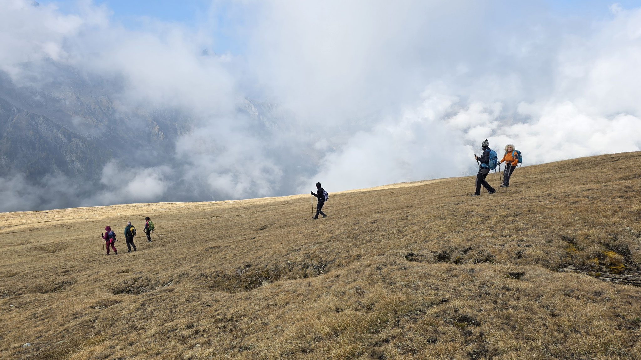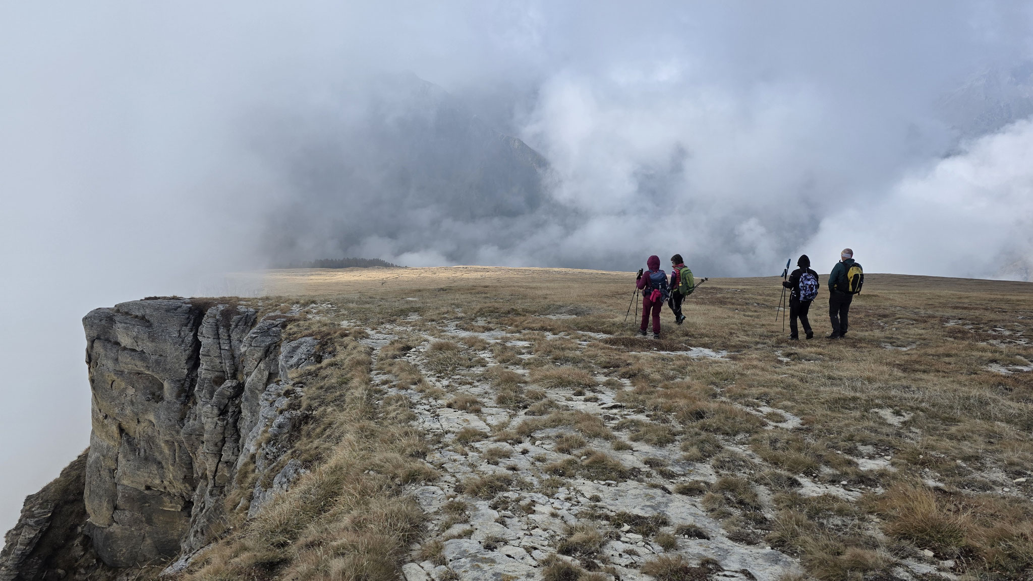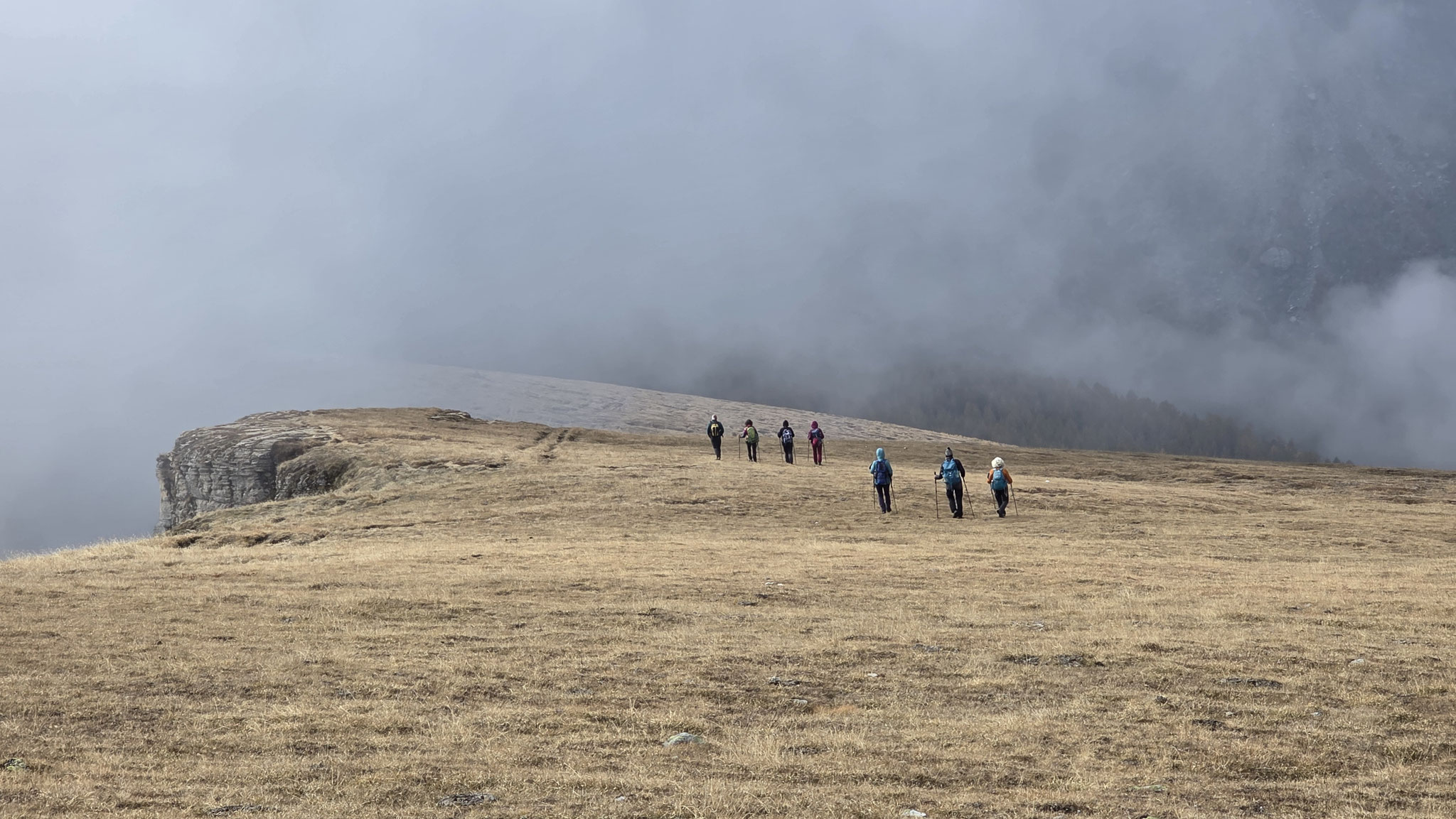 Bellissimo lungo giro ad anello con 26 km. e 300 m. di sviluppo e 1430 m. di dislivello, rovinato in parte dal tempo, all'inizio nella nebbia, poi è migliorato ma è quasi sempre rimasto nuvolo.