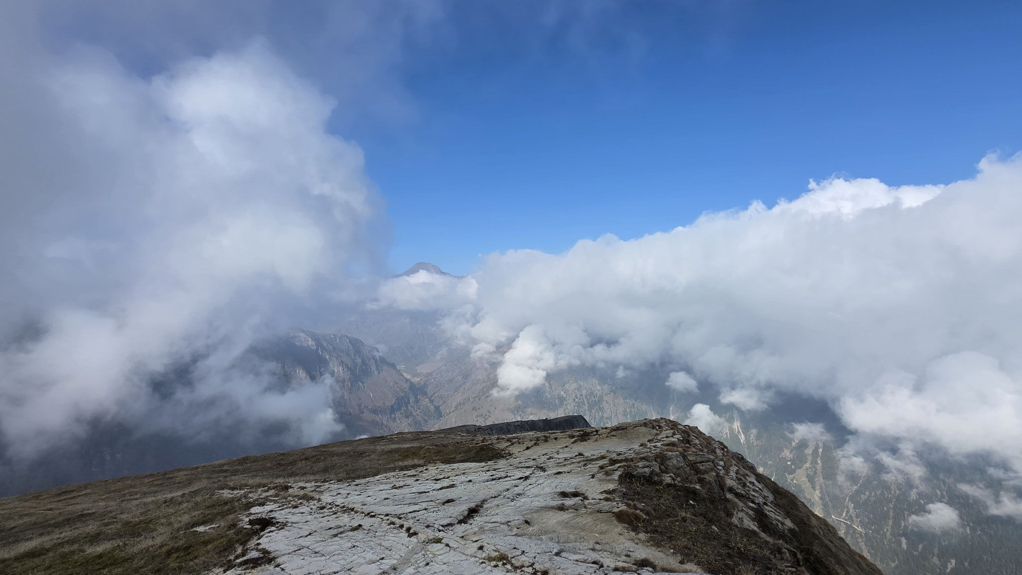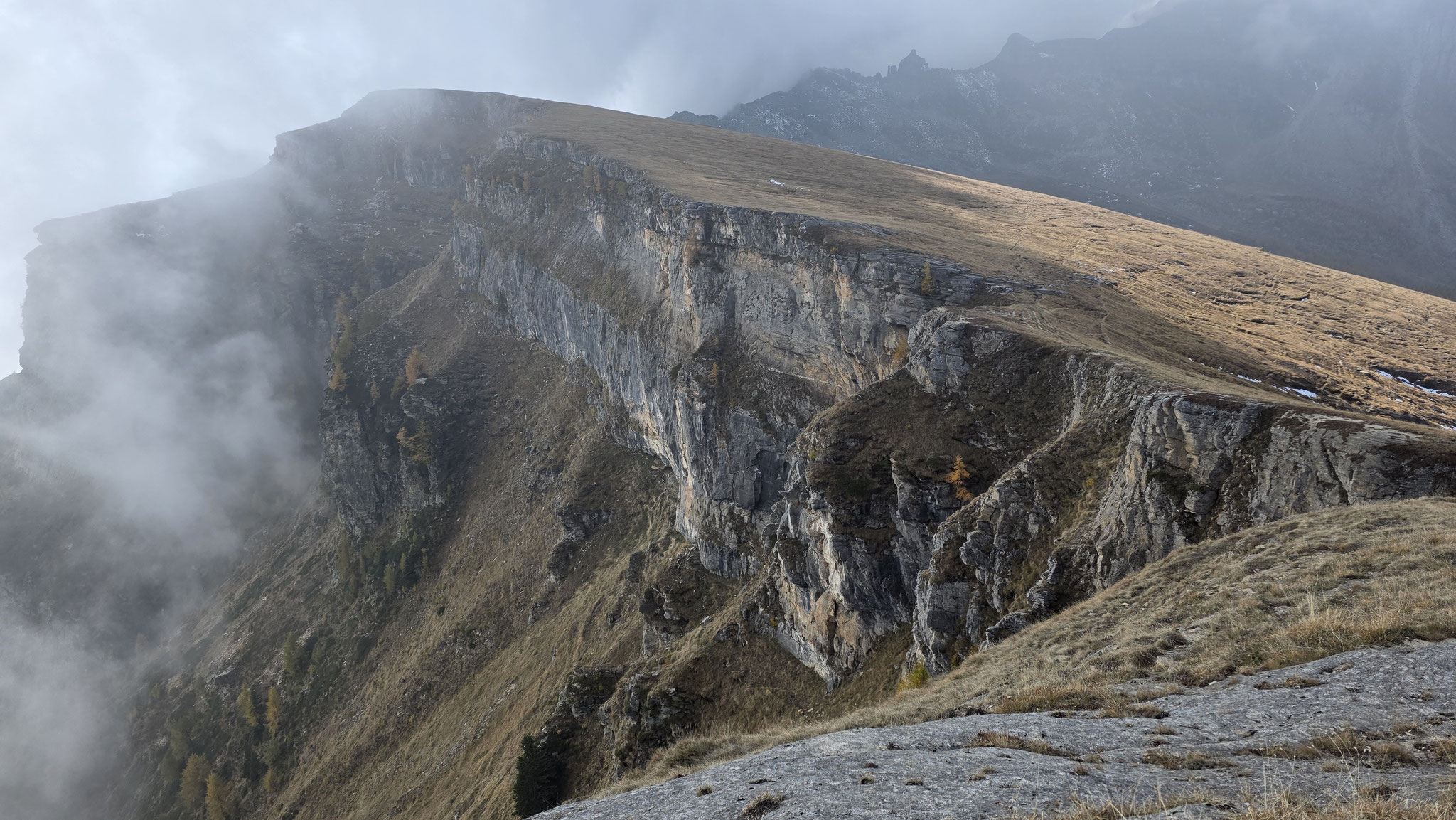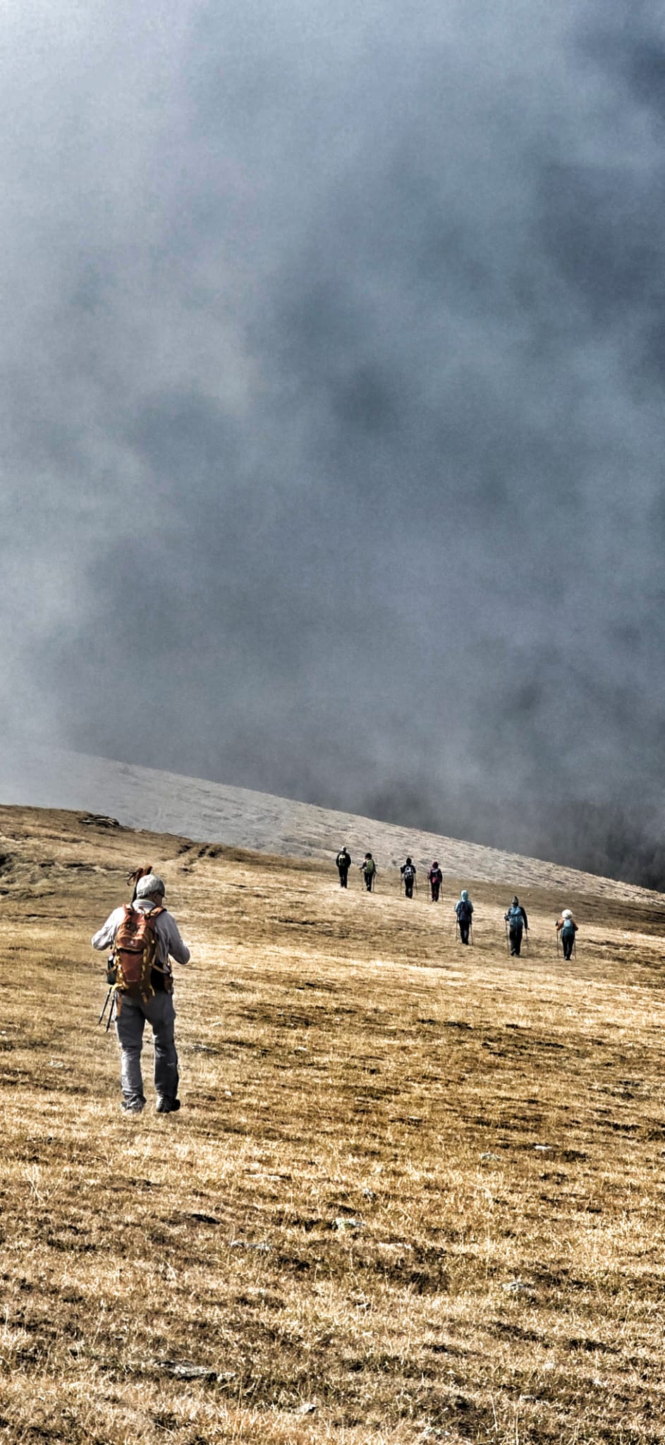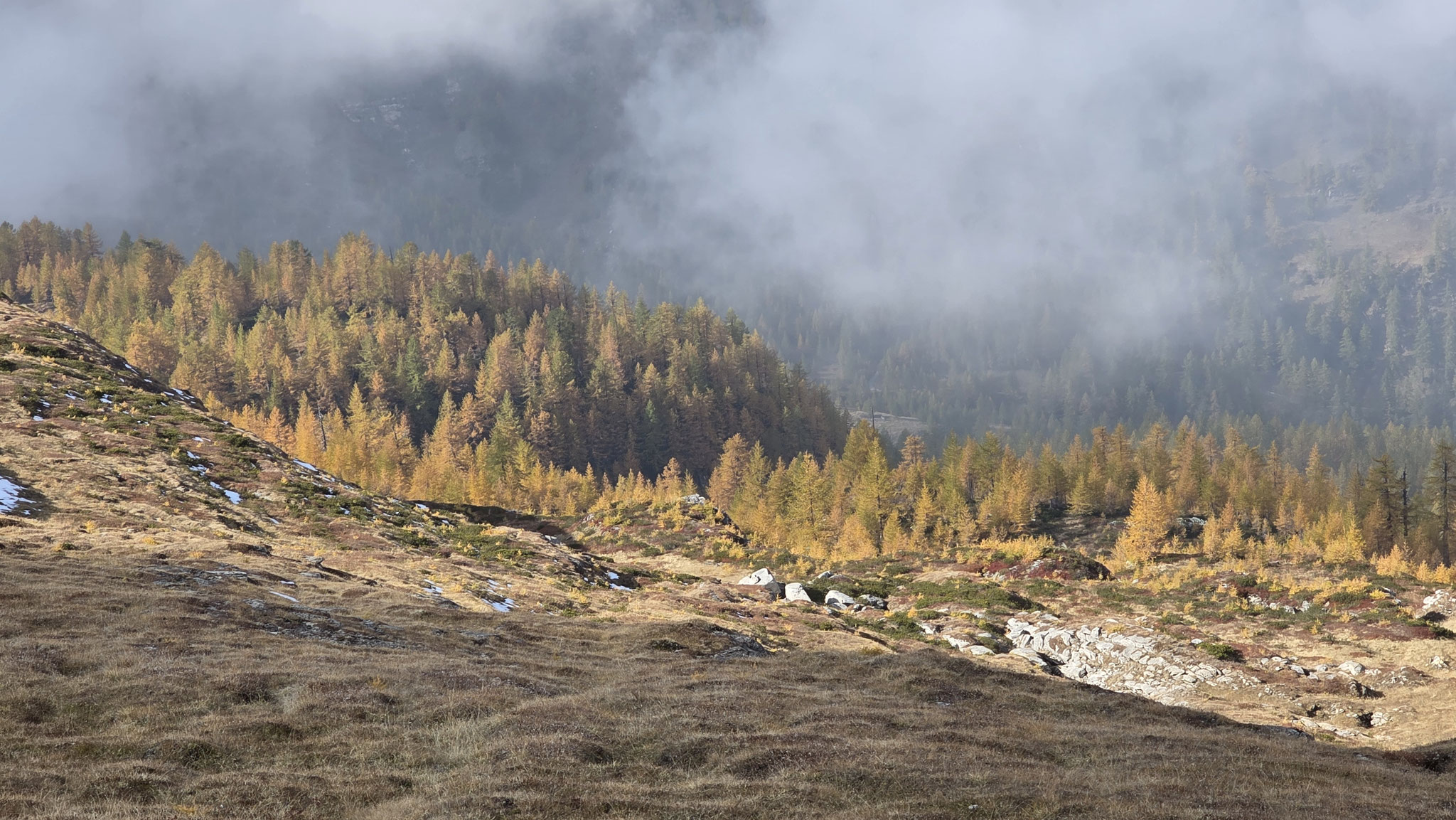 Bellissimo lungo giro ad anello con 26 km. e 300 m. di sviluppo e 1430 m. di dislivello, rovinato in parte dal tempo, all'inizio nella nebbia, poi è migliorato ma è quasi sempre rimasto nuvolo.