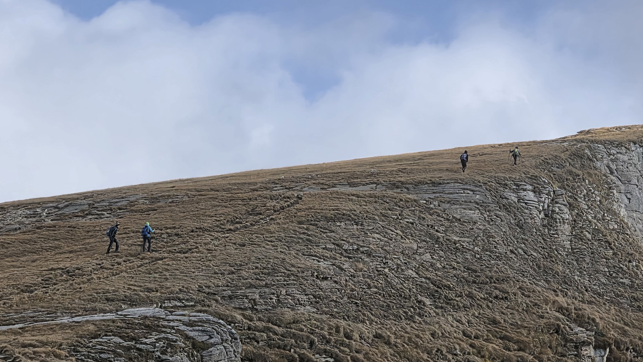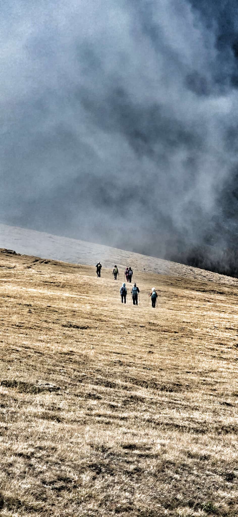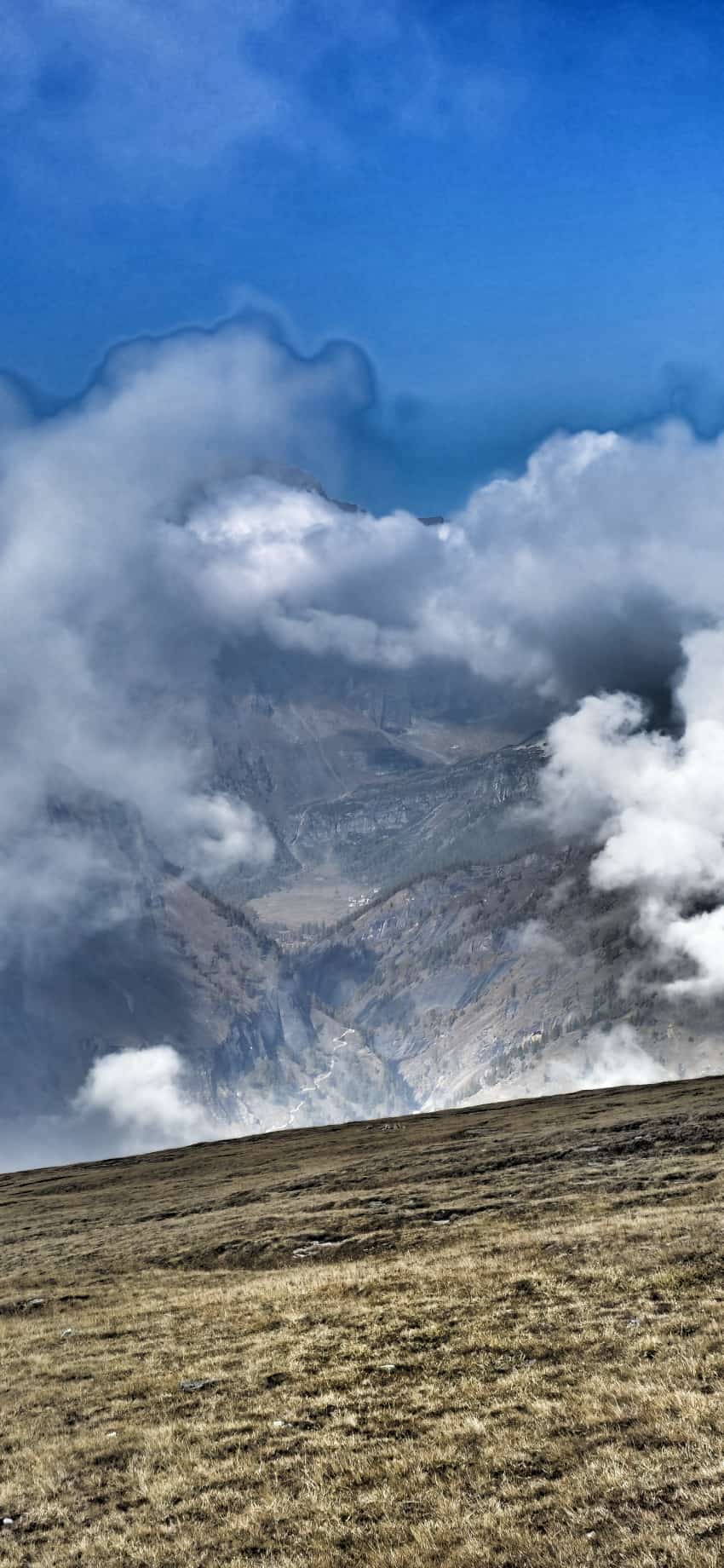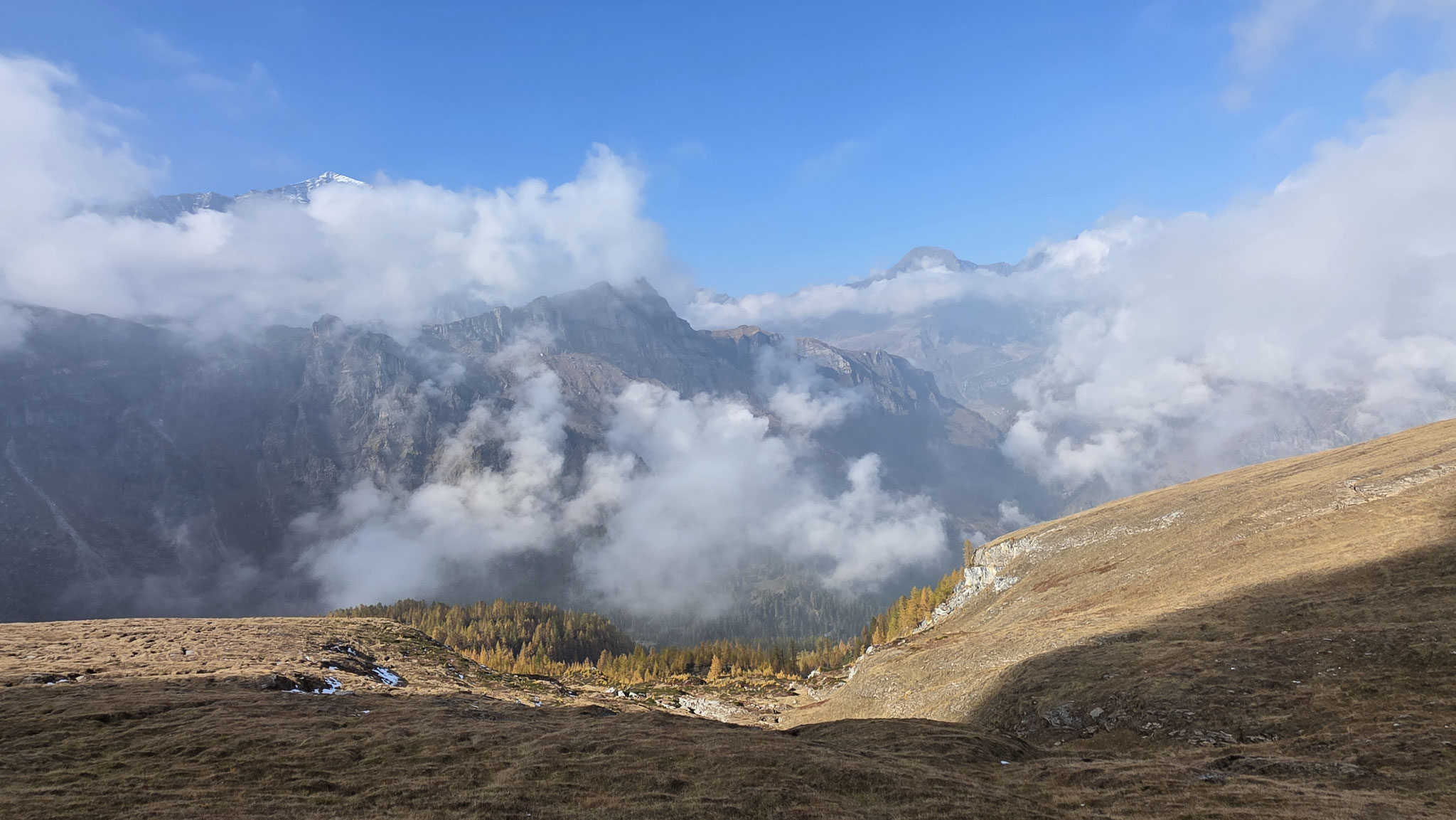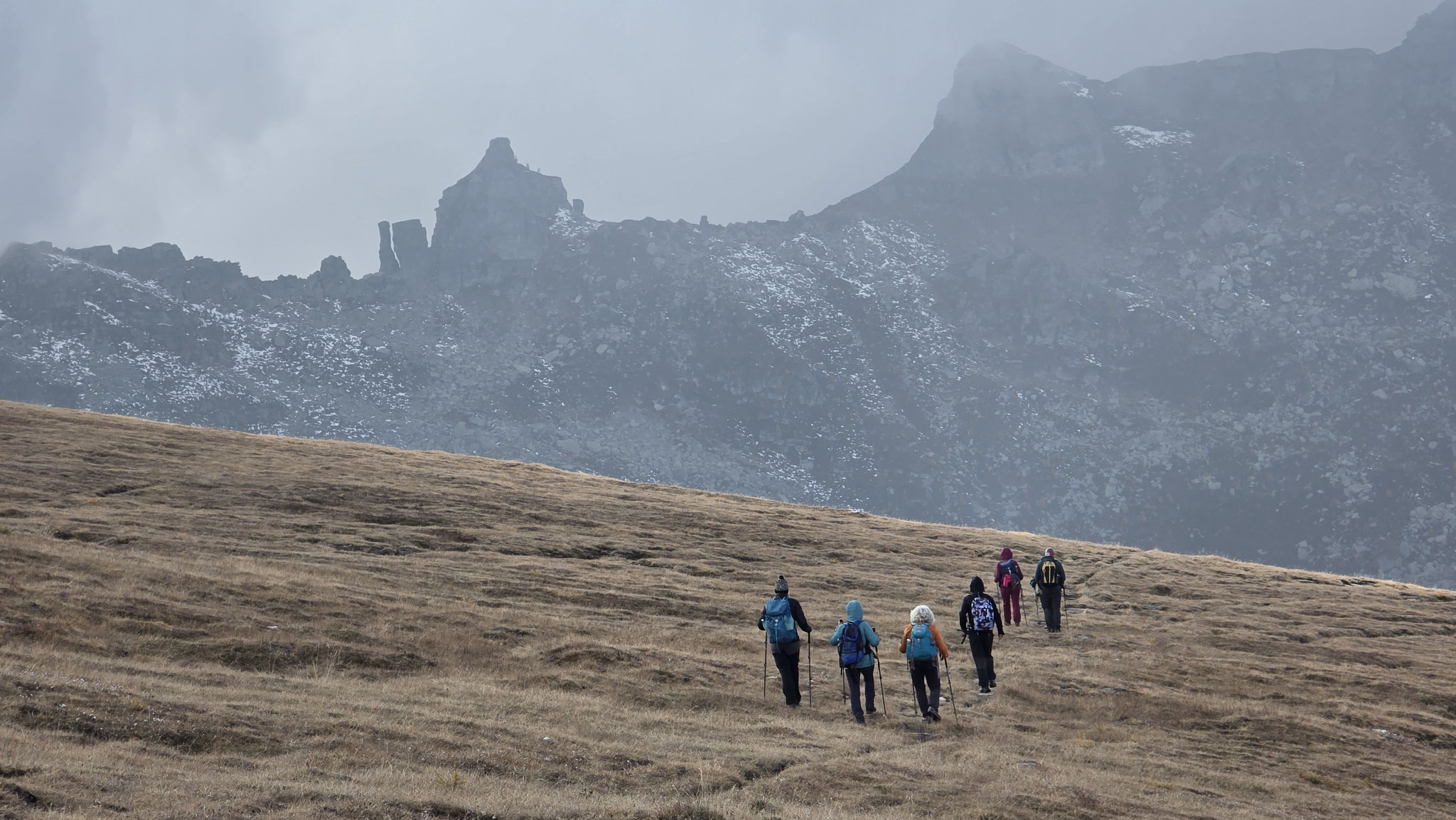 Bellissimo lungo giro ad anello con 26 km. e 300 m. di sviluppo e 1430 m. di dislivello, rovinato in parte dal tempo, all'inizio nella nebbia, poi è migliorato ma è quasi sempre rimasto nuvolo.