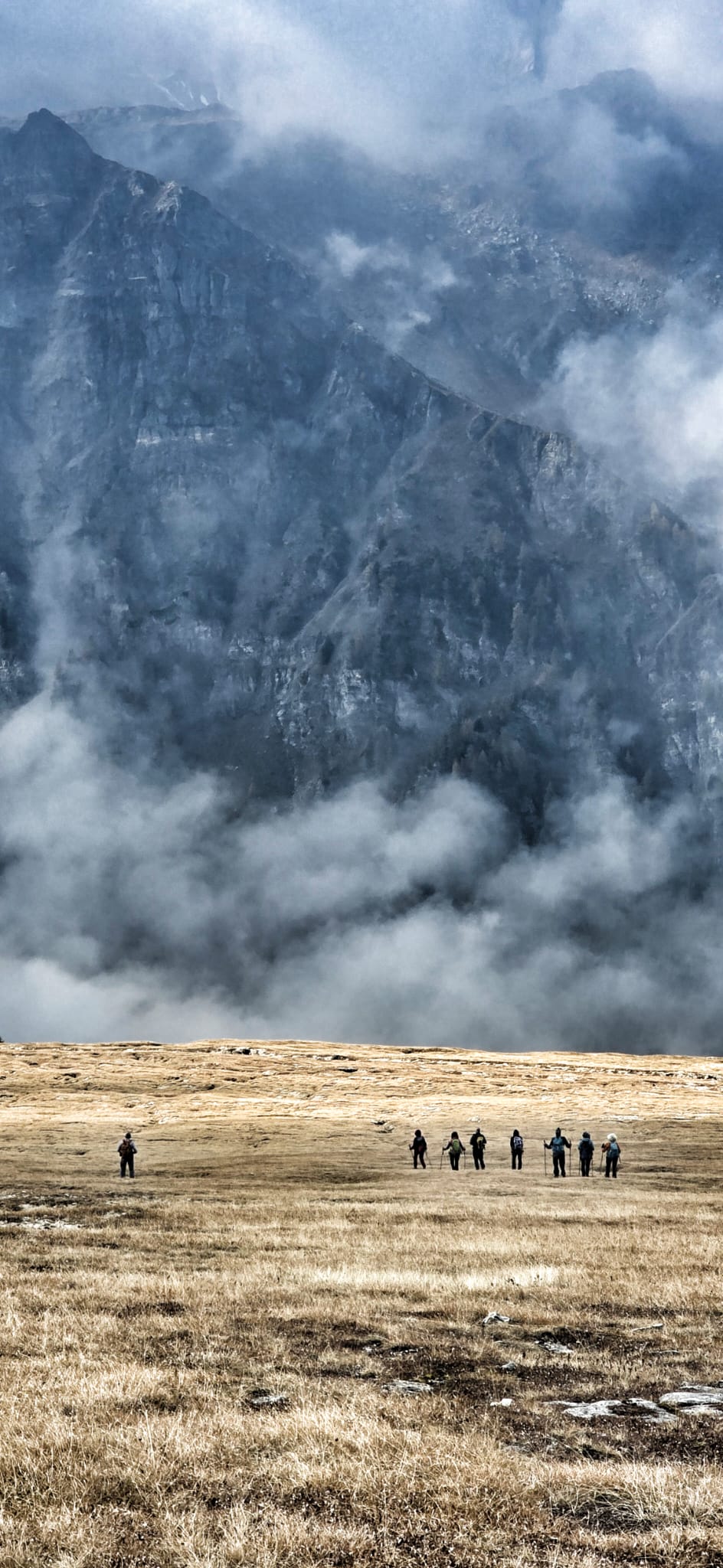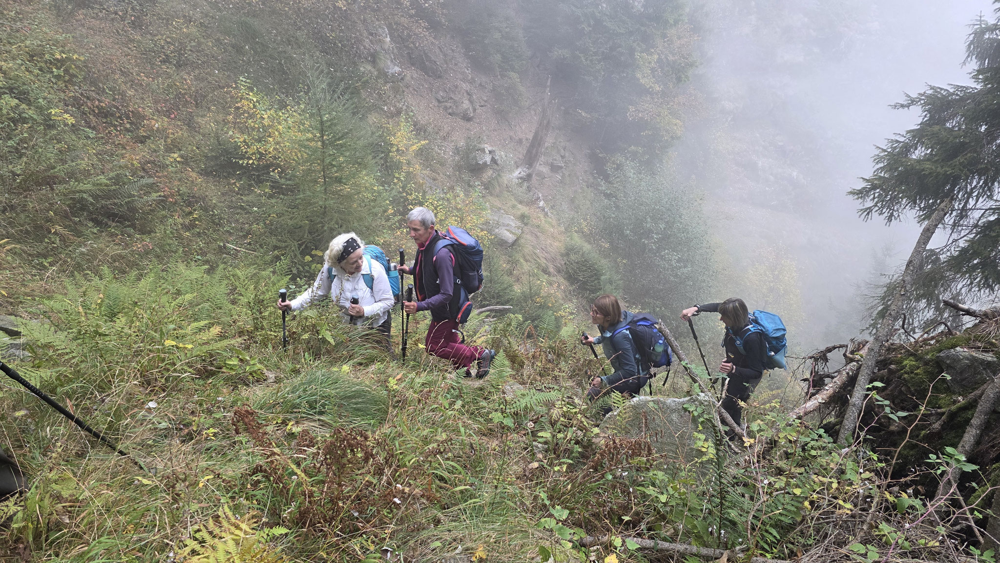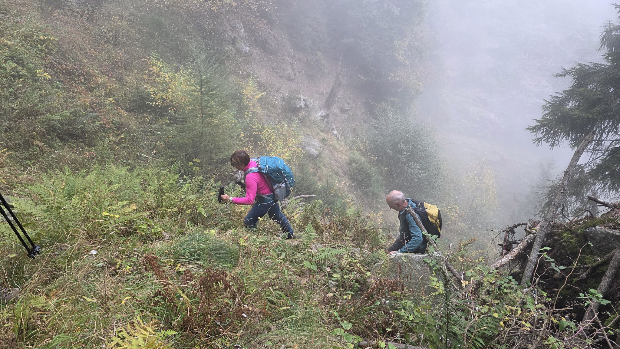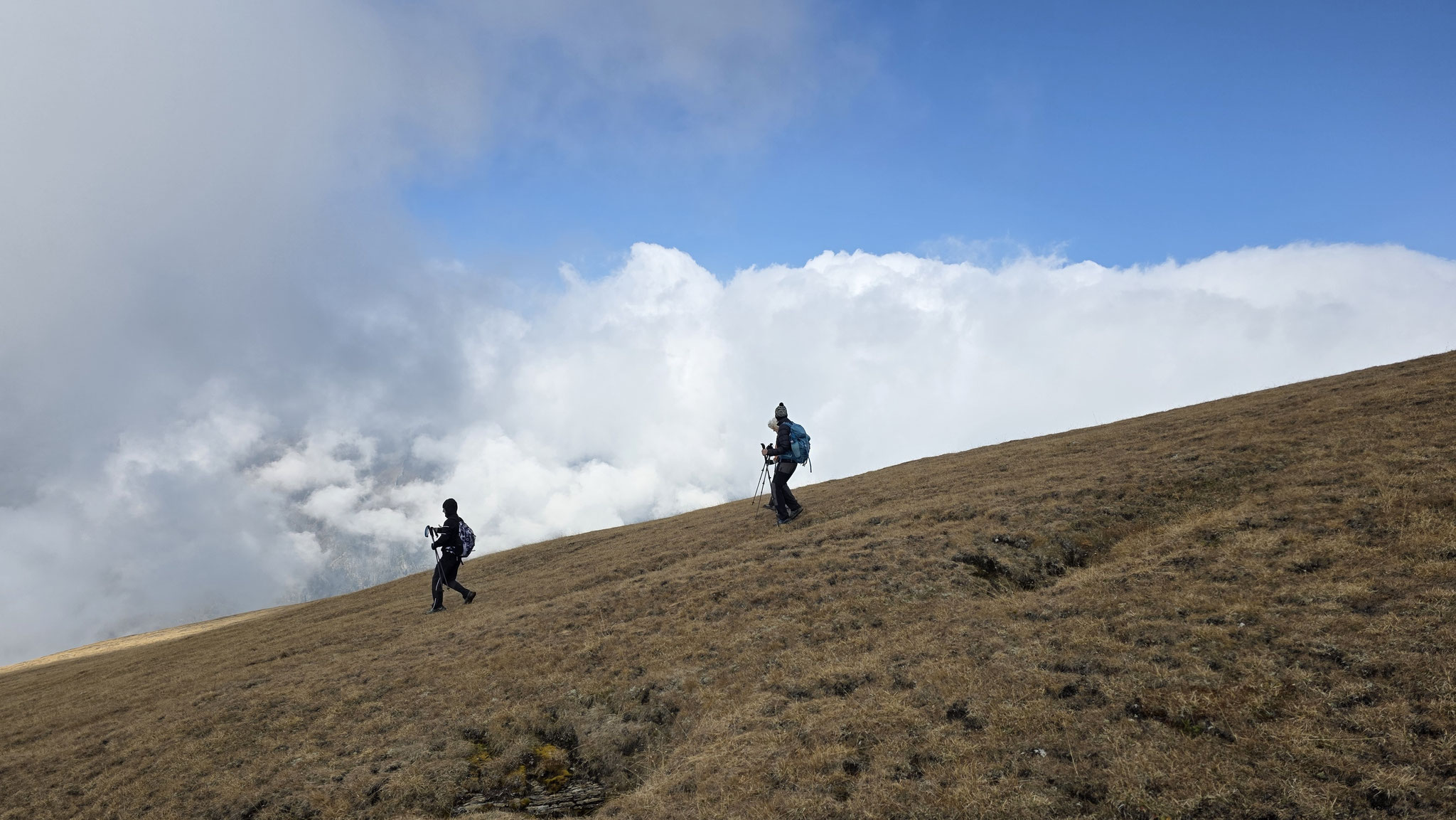 Bellissimo lungo giro ad anello con 26 km. e 300 m. di sviluppo e 1430 m. di dislivello, rovinato in parte dal tempo, all'inizio nella nebbia, poi è migliorato ma è quasi sempre rimasto nuvolo.