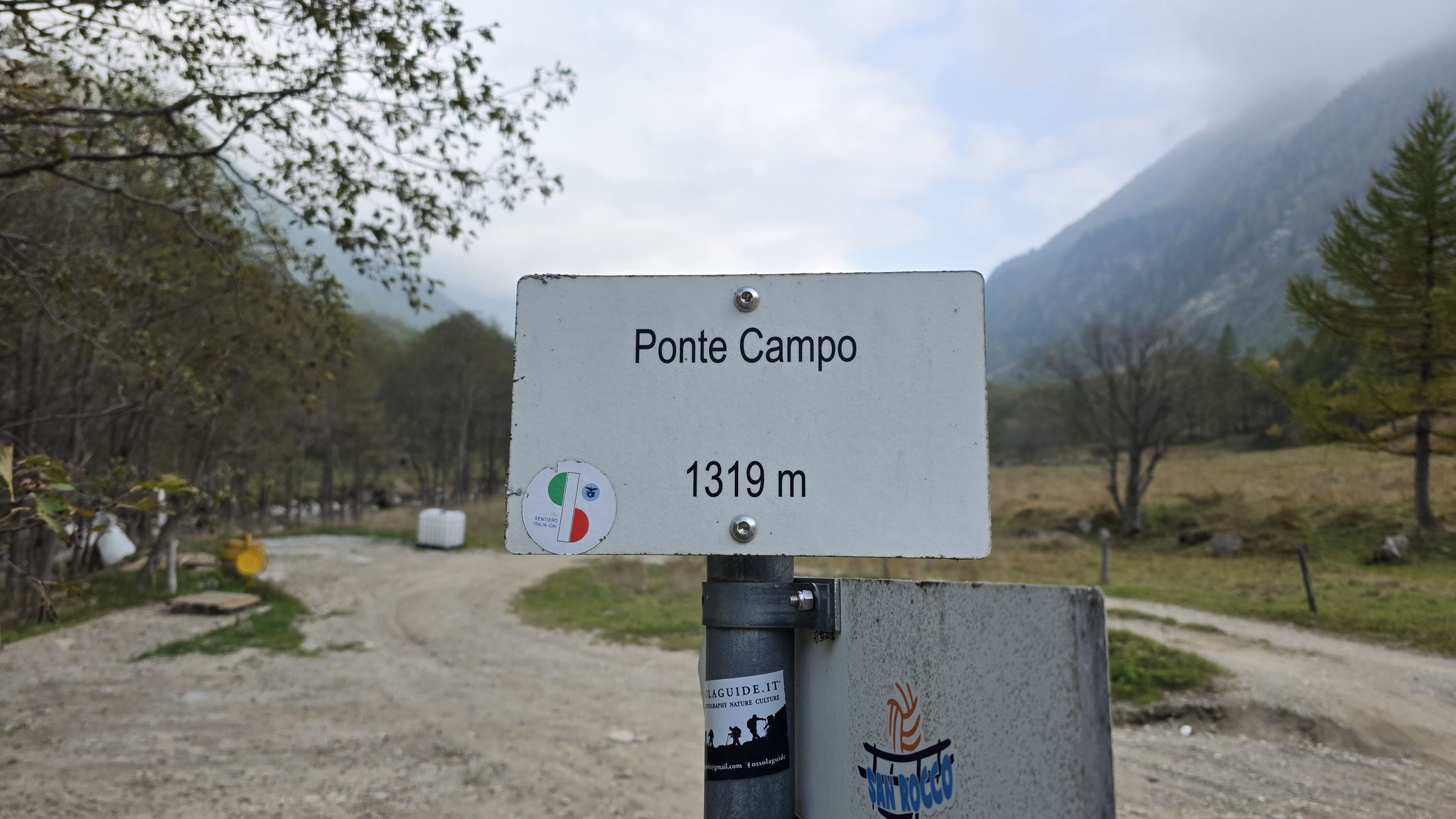 Scendiamo a destra e arriviamo all'Alpe Balmelle m. 2067 alle 14,50. Ora si scende su una strada sterrata. Superiamo l'Alpe Vallè m. 1786 alle 15,30, arriviamo al bivio con la strada che sale al Veglia alle 16,10, scendiamo a destra e arriviamo a Ponte Campo alle 16,20. Sosta per raggrupparci e ripartenza alle 16,30.
