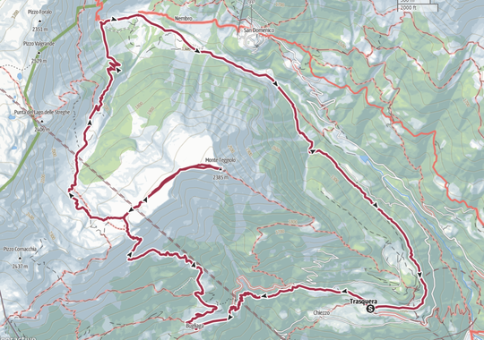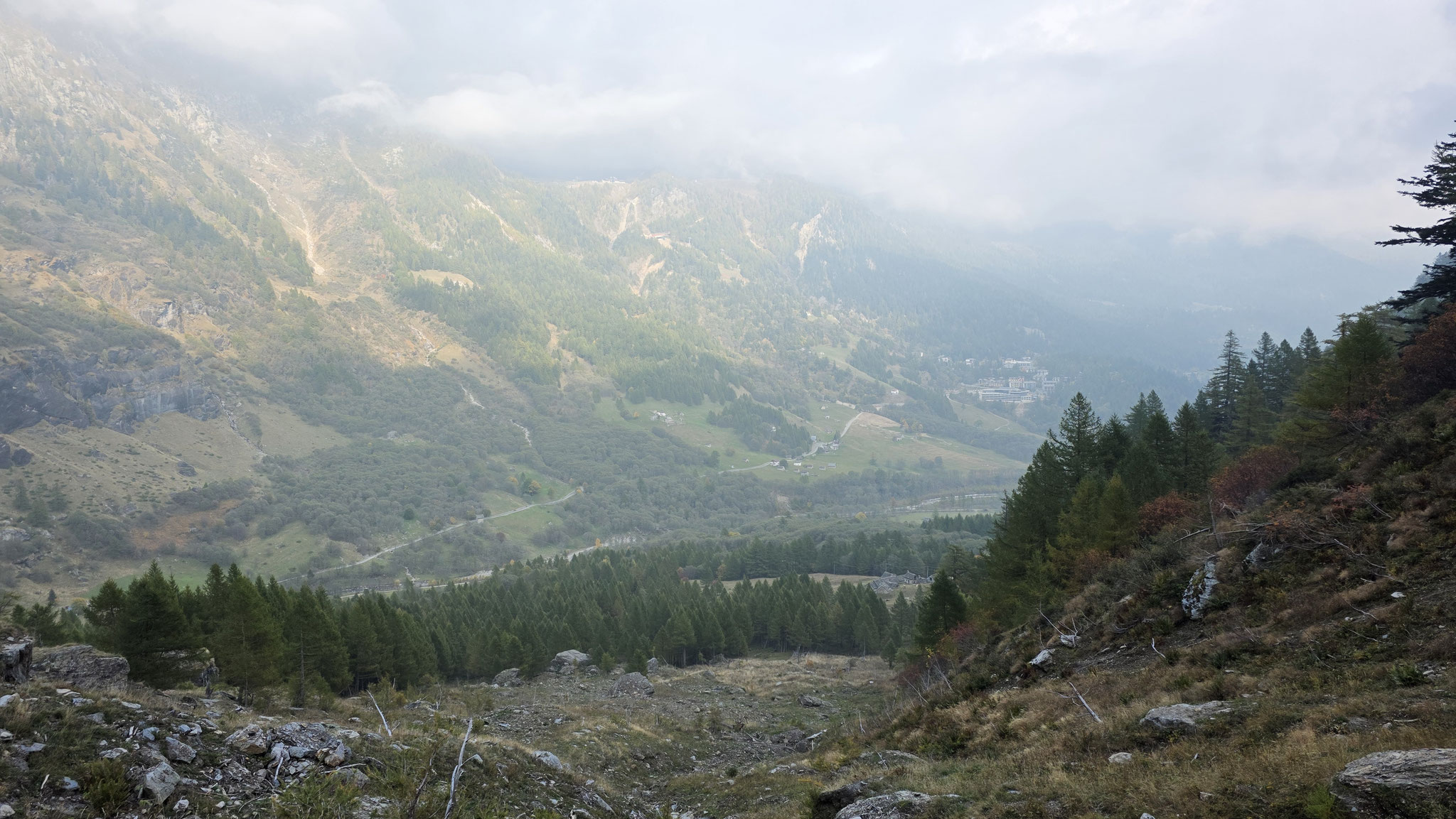 Proseguiamo a destra su strada sterrata, superiamo Nembro m. 1300 alle 16,40 e arriviamo al bivio dove parte la mulattiera per Trasquera alle 17,00. Proseguiamo a destra, la bella e lunga mulattiera prosegue in falsopiano e ci riporta a Trasquera alle 18,15.